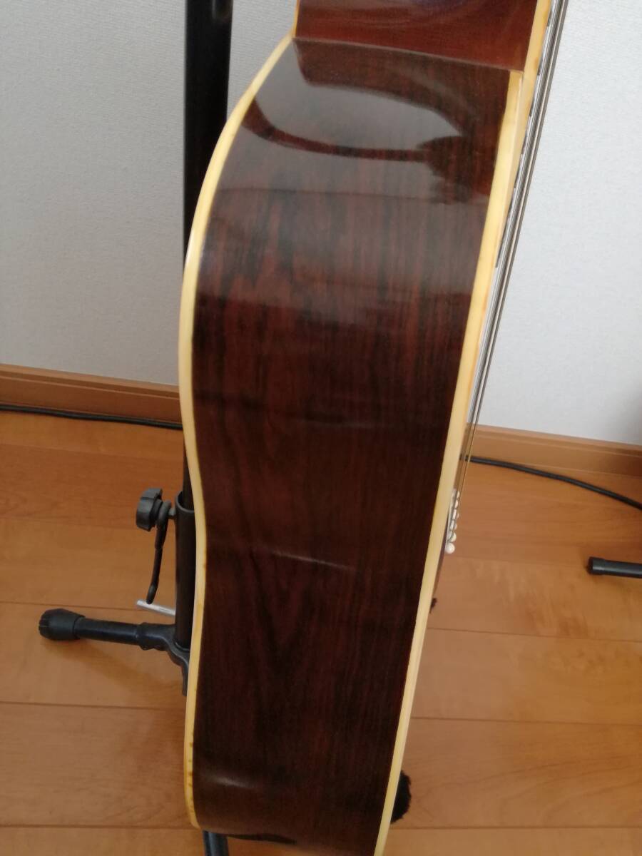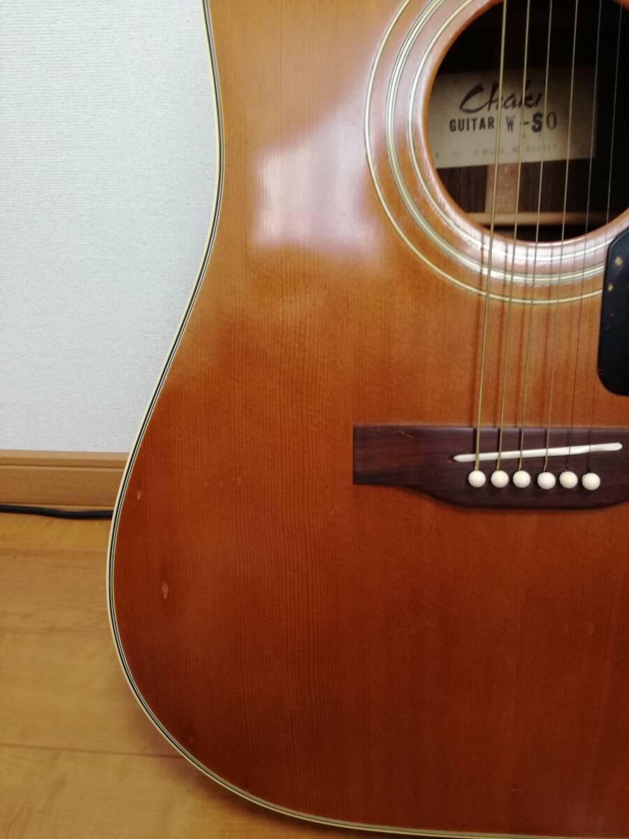 商品説明 | 送料無料 希少 Chaki チャキ W-50 1970年代 ヴィンテージ 希少 レア ハードケース付き chakiのヴィンテージギター、W-50です。 おそらく1970年代頃のものと考えられます。 京都の老舗Chaki(茶木)は、流通量こそ少ないですが独自性とつくりの良さは大いに魅力的で、熱烈なファンが多いギターブランドです。単板スプルーストップとローズウッドを組み合わせたドレッドノートボディで、低音域に重心のある力強いコードの響きを感じられる芯が太いサウンドが得られます。 今ではなかなか見られないため、 希少性の高いレア品です。 【仕様】 トップ板 材質:スプルース単板 サイド板 材質:ローズウッド ハカランダかもしれません バック板 材質:ローズウッド ハカランダかもしれません ・弦高 12F 6弦約3.0mm程度 12F 1弦約2.8mm程度 特に大きく目立つくらいの割れは見受けられません 年代の割には程度が良いと思います 中古品ですので、本体に多少の埃、汚れ、見落としている キズ、スレなどはあるかも知れません。多少の使用感も予め ご了承お願いいたします。 ノークレーム・ノーリターンでよろしくお願いします。 |
