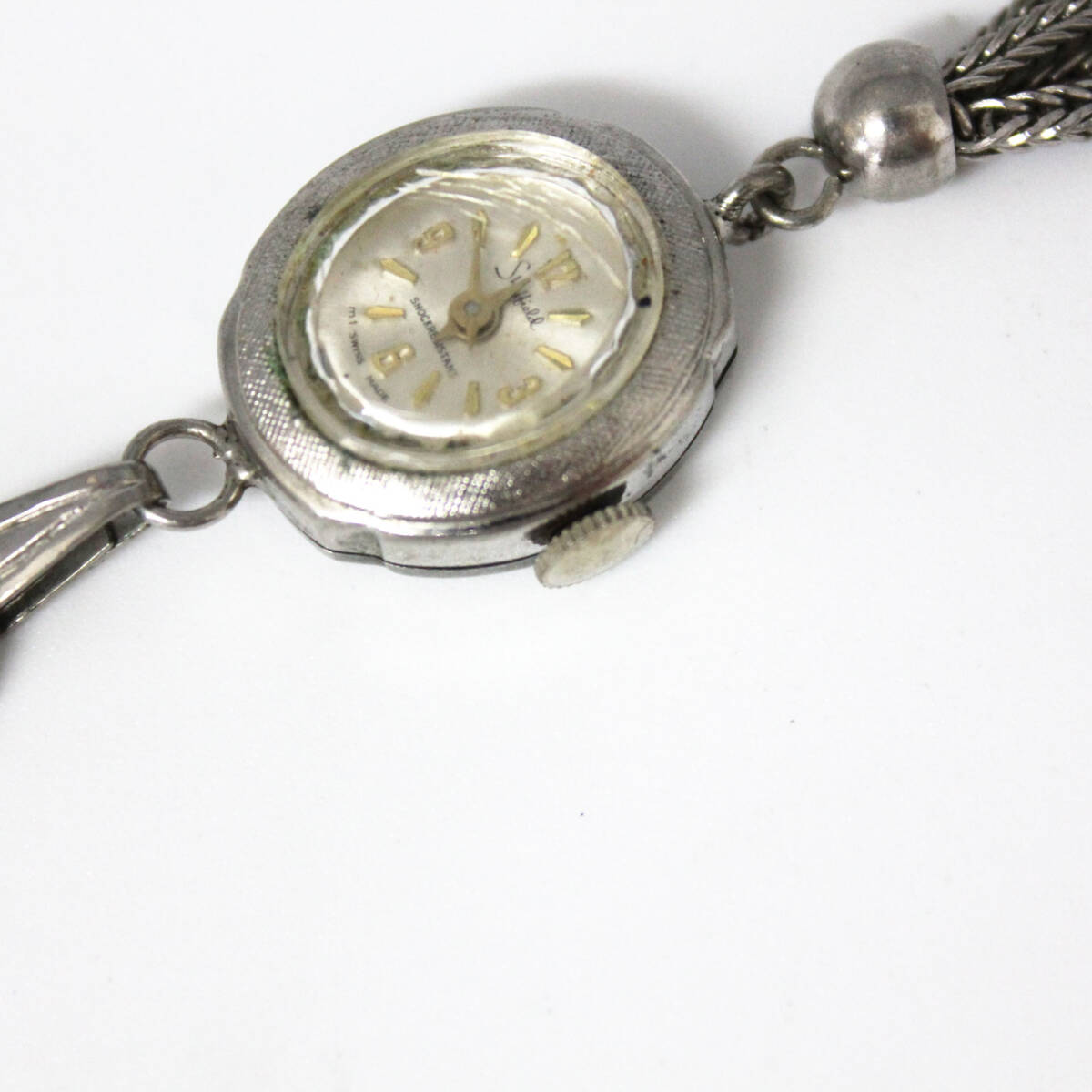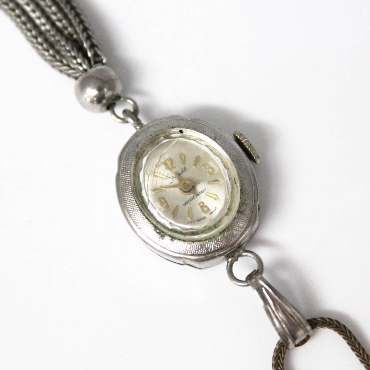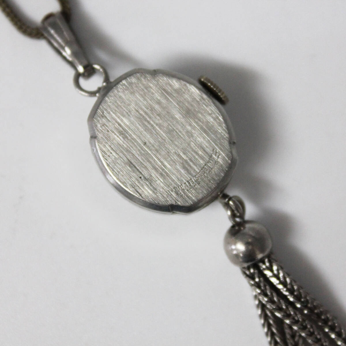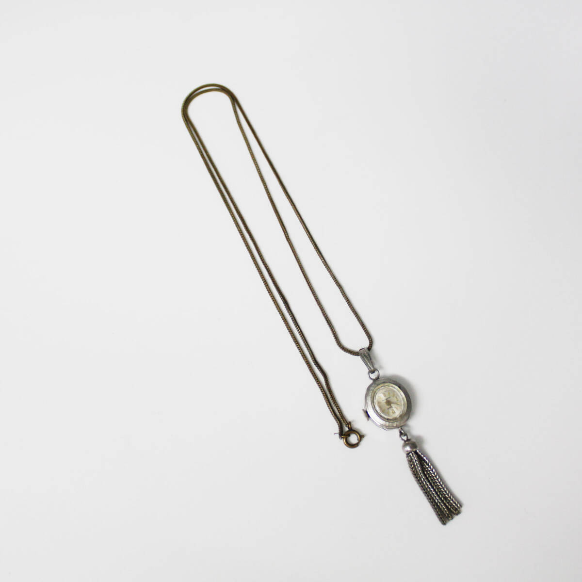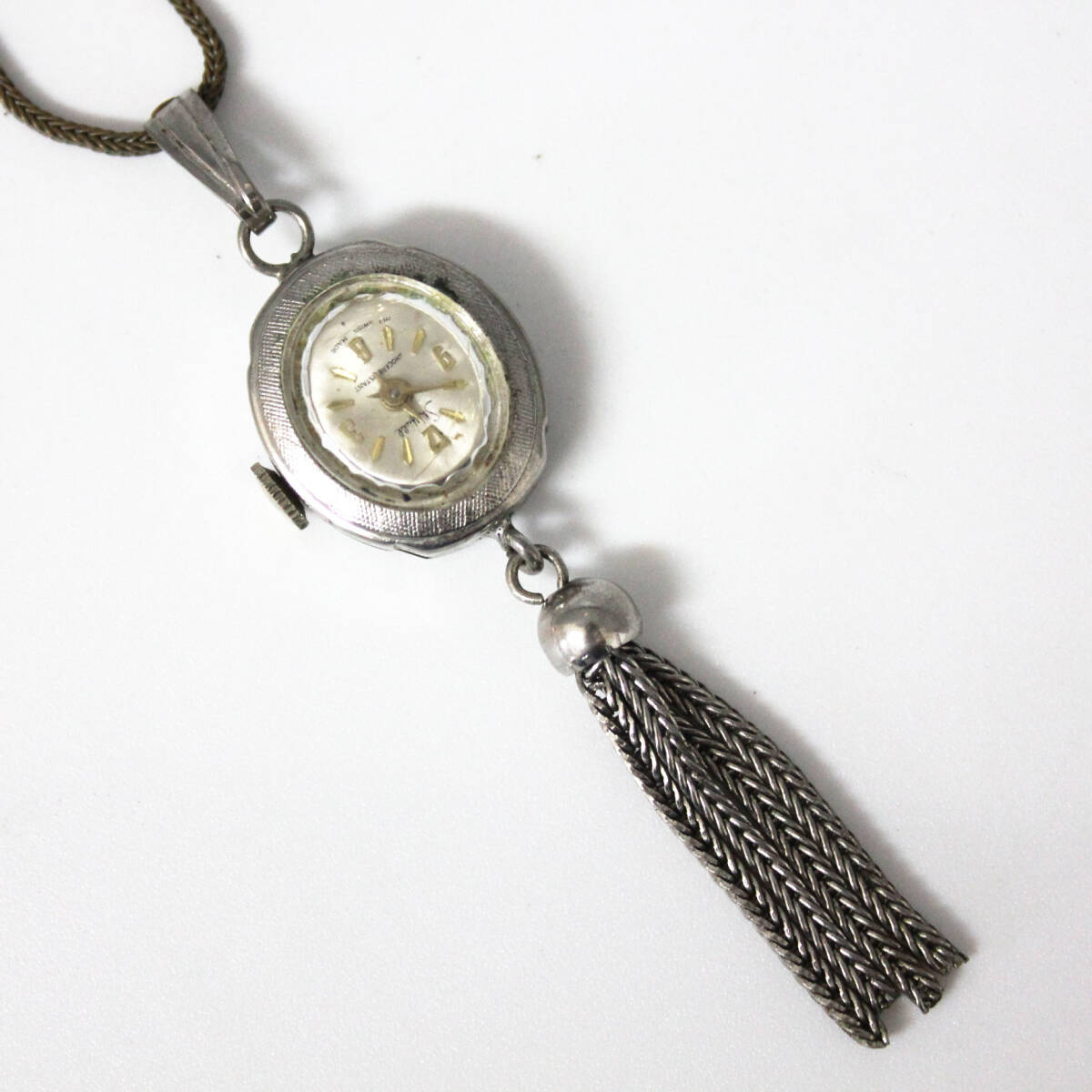 レディース時計 手巻き 稼働品 文字盤シルバー ネックレスウォッチ