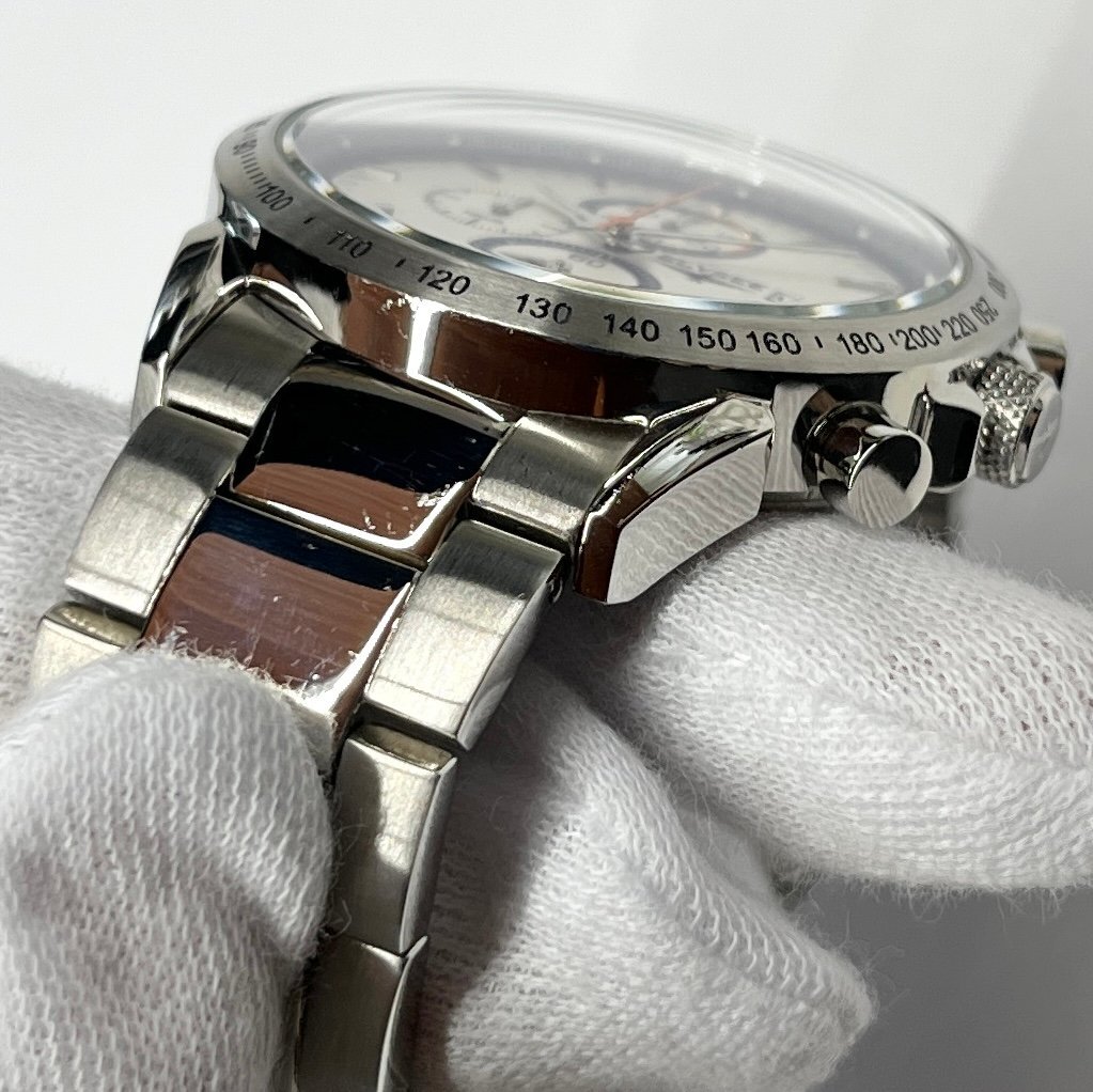 丁寧な検品・梱包を行い、通常商品と同様に大切にお届けします。 ●注意事項 ・新品ですが、外観に軽度の不具合がございます。 ・小傷が多数見られます。写真に一部掲載しております。気になる方はご購入前にお問い合わせください。 ・コマ調整が施されております。最長で手首周りは約165mmでございます。 ・訳あり特価商品のため、保証・返品・交換はご遠慮いただいております。 ・在庫限りの販売となります。再入荷の予定はございません。無くなり次第、販売終了とさせていただきます。 商品データ ●Citizen Miyota OS10クロノグラフムーブメント ●日付表示、夜光表示 ●ストップウォッチ機能 ●ケースサイズ:約42mm ●ケース厚:約12mm ●100m防水 ●ケース素材:ステンレス無垢 ●高級純正幅22ステンレスベルト ●ハードミネラルガラス風防 ●裏蓋スクリューバック ●保証期間:メーカー保証なし(到着後、7日以内の初期不良受付のみ) ●その他の付属品はありません。簡易梱包での発送となります。 |