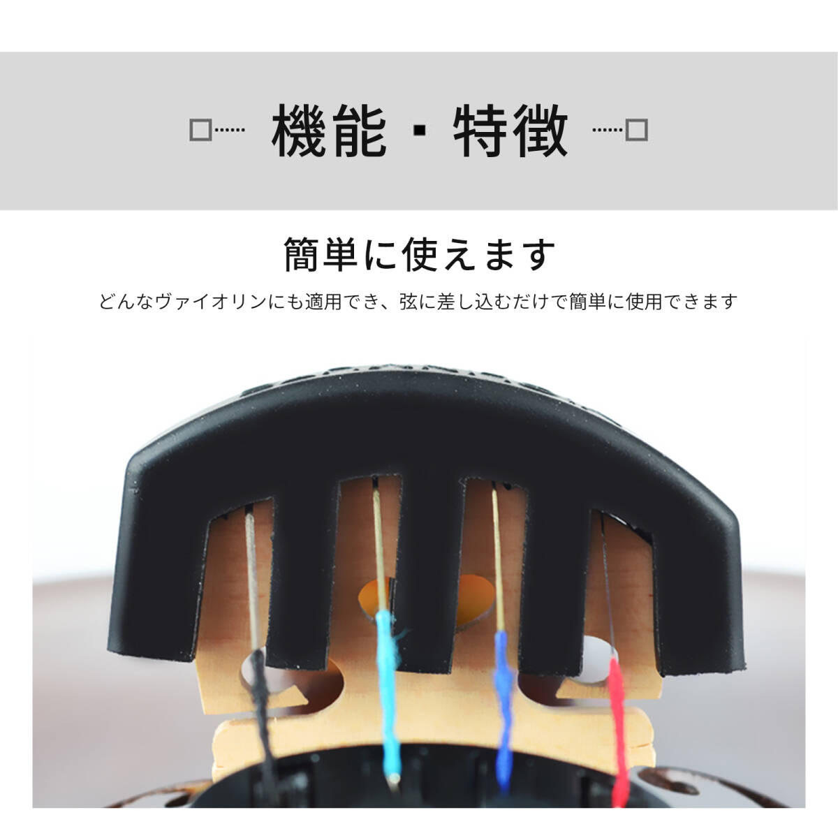 | 製品説明 | 1、【消音と弱音効果が良い】:駒の振動を抑え、ボディへの共鳴を低減し、楽器の音量を抑えます。高品質なサウンドとクリアなトーンを維持します。昼間はもちろん、夜間の練習にも最適です。 2、【安全な設計】:柔軟なゴムで製造したのでバイオリンにキズをつけにくいです、天然ゴム素材で、駒を磨り減りません。バイオリンの表面に落とされたら塗料を傷つけません。初心者でも操作できます。 3、【軽量で操作簡単】:軽量で耐久性があり、持ち運びや操作が簡単です。バイオリンケースの小物ポケットに収納でき、駒を上から押すだけで簡単に使用できます。 4、【使用範囲が広い】:昼間でも夜間でも練習できます。ご家族やお友達を邪魔させたくないときに、バイオリンの練習や遊びに最適です。優れた消音効果は最小限に文字列のボリュームを下げます。 |