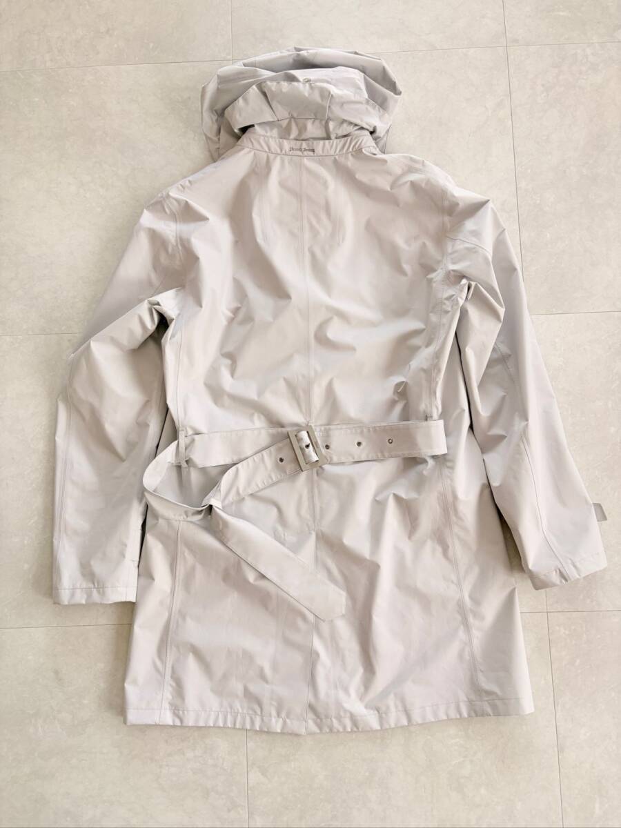 イタリア発のラグジュアリーブランド「HERNO(ヘルノ)」は、クラフツマンシップと機能性を融合させたアウターウェアで知られ、世界中のファッショニスタから高い評価を得ています。クラシックなデザインに現代的な快適性を加えたプロダクトは、都市生活においても洗練されたスタイルを保ちつつ、実用性を兼ね備えることが魅力です。 本作は、ヘルノを代表する「トレンチコート」。 ホワイトグレーの上品な色合いと、耐久性・防水性に優れたゴアテックス素材を組み合わせることで、雨や雪などの悪天候にも対応可能です。軽量ながら保温性に優れ、快適な着心地を保ちつつ、都会的な雰囲気を損なわないのが特徴です。 フードは取り外し可能。 天候やスタイリングに応じて自由にアレンジできるため、カジュアルな印象からドレッシーな印象まで幅広く表情を変えられます。また、ウエストベルト付きのデザインは、着用時にシルエットを調整可能で、立体的で引き締まったラインを演出。着る人の体型に自然に馴染む上品なシルエットを実現しています。 長めの着丈は防寒性を高めると同時に、スタイル全体に縦のラインを意識したスマートな印象をもたらします。フロントのディテールや縫製の美しさにもこだわり、ラグジュアリーな雰囲気を損なわずに日常使いが可能です。 ヘルノのトレンチコートは、機能性とデザイン性を両立させた一着。 悪天候でもスタイルを崩さず、都会的で洗練された装いを叶える、冬のワードローブに欠かせない上質なアウターです。 品名 :HERNO / ヘルノ 表記サイズ :48 素材:ポリエステル100% 着丈:89cm 袖丈:66cm 肩幅:45cm 身幅:54cm ※実測値となりますが、若干の誤差はご了承ください。 ※スムーズなお取引を心がけさせていただいておりますので、オークション終了より24時間以内にご連絡をいただけない場合また土日祝日を除き48時間以内にお支払い手続きをいただけない場合は、お取引の意思なしと判断させていただき取引キャンセルとさせていただきます。 万が一上記が不可の場合は事前にご連絡いただくか、入札をお控えいただきますようお願い申し上げます。 ※なるべく現物に近いお色味で撮影するよう心掛けておりますが、閲覧環境の違い等によって違いが出る場合があります。 差し替えトラブルを避ける意味でも上述した旨含め、イメージと違う等での返品は受け付けておりません。 百貨店並みのサービスを求める方や神経質な方の入札はお控えいただきますようお願い申し上げます。 |