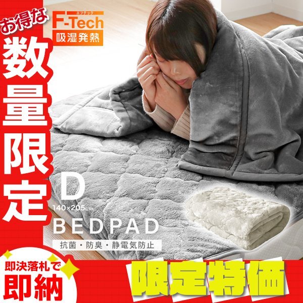 【限定セール】ダブル あったか敷きパッド 吸湿発熱 丸洗い可能 140×205cm F-Tech 抗菌 防臭 静電気防止 敷パッド 布団 寝具 ホワイト