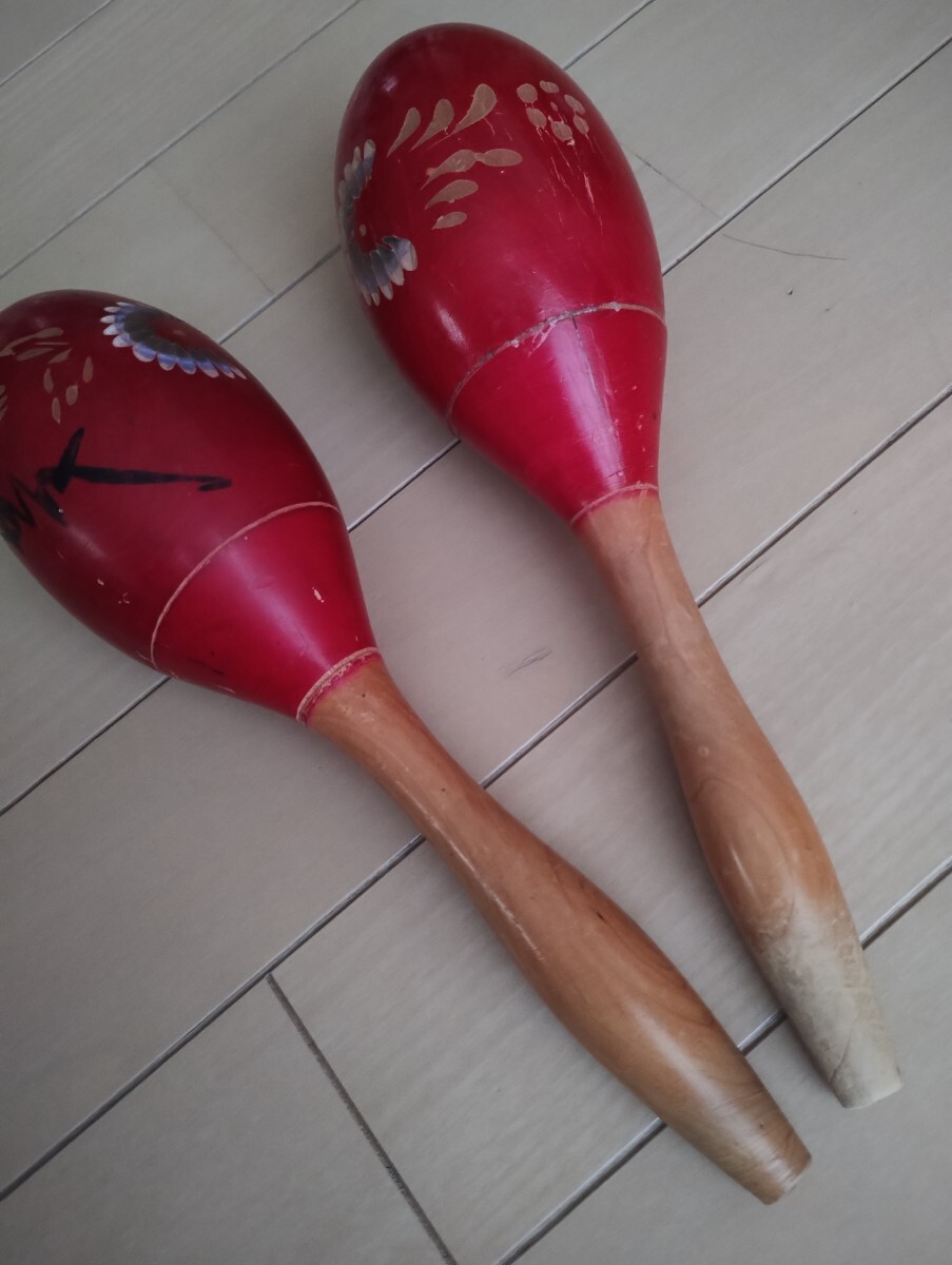 マラカスはかなり年季が入っています。片方に補修の跡がありますが、使用には問題ありません。(画像10)