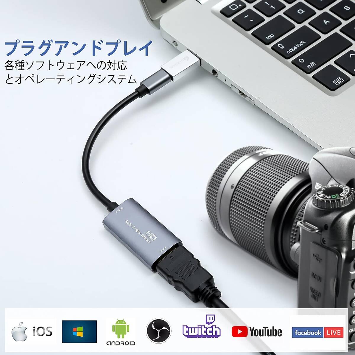 【プラグ アンド プレイ、持ち運びが簡単】 追加のドライバーや外部電源は必要ありません。プラグ アンド プレイするだけで、使いやすく、コンピューターにインストールできます。小型で持ち運びが簡単で、柔軟な操作が可能です。ゲームのライブ ストリーミング、会議室、オンライン会議でコンテンツを共有するのにも最適な方法です
