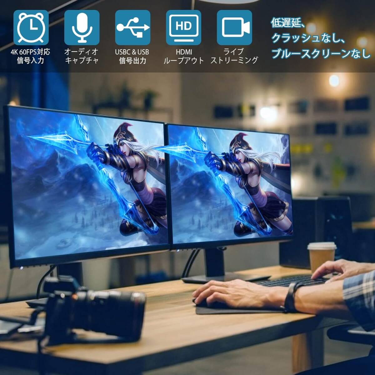 【低遅延画面共有】低遅延、クラッシュ、フリーズ、ブルー スクリーンはありません。このHDMI to Type-Cキャプチャーカードは、良質のオーディオまたは高解像度ビデオをコンピューターまたはストリームデッキに直接簡単に記録および送信できます。ビデオとオーディオの録音やライブ ストリーミングに最適です