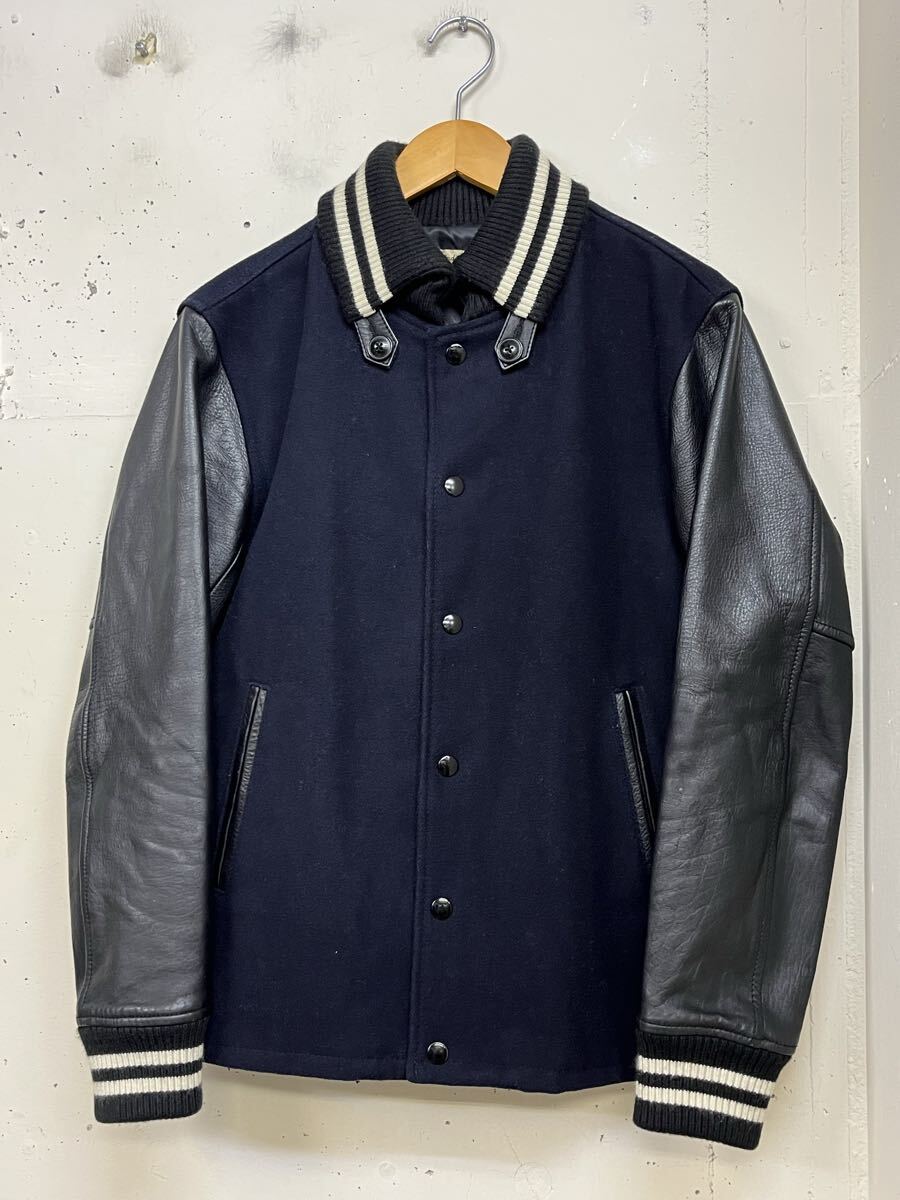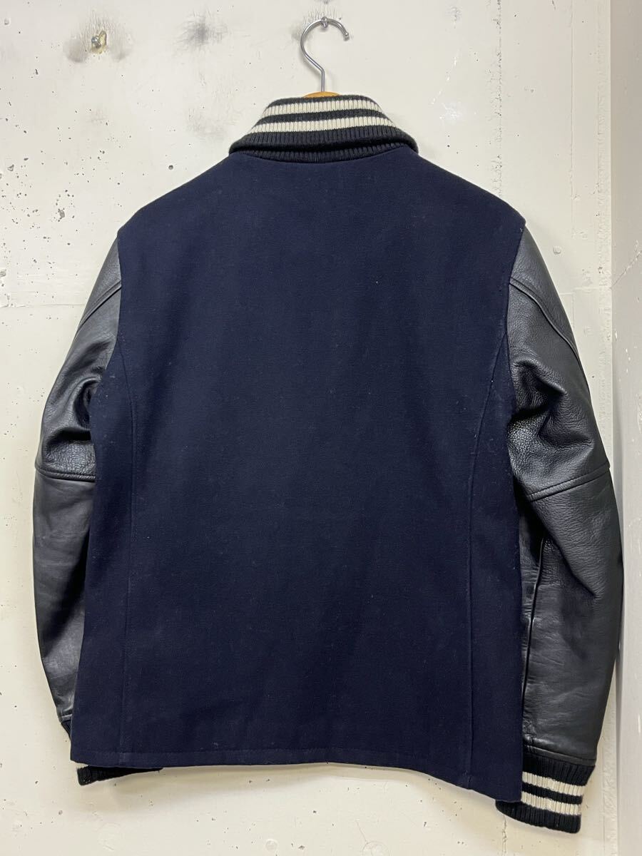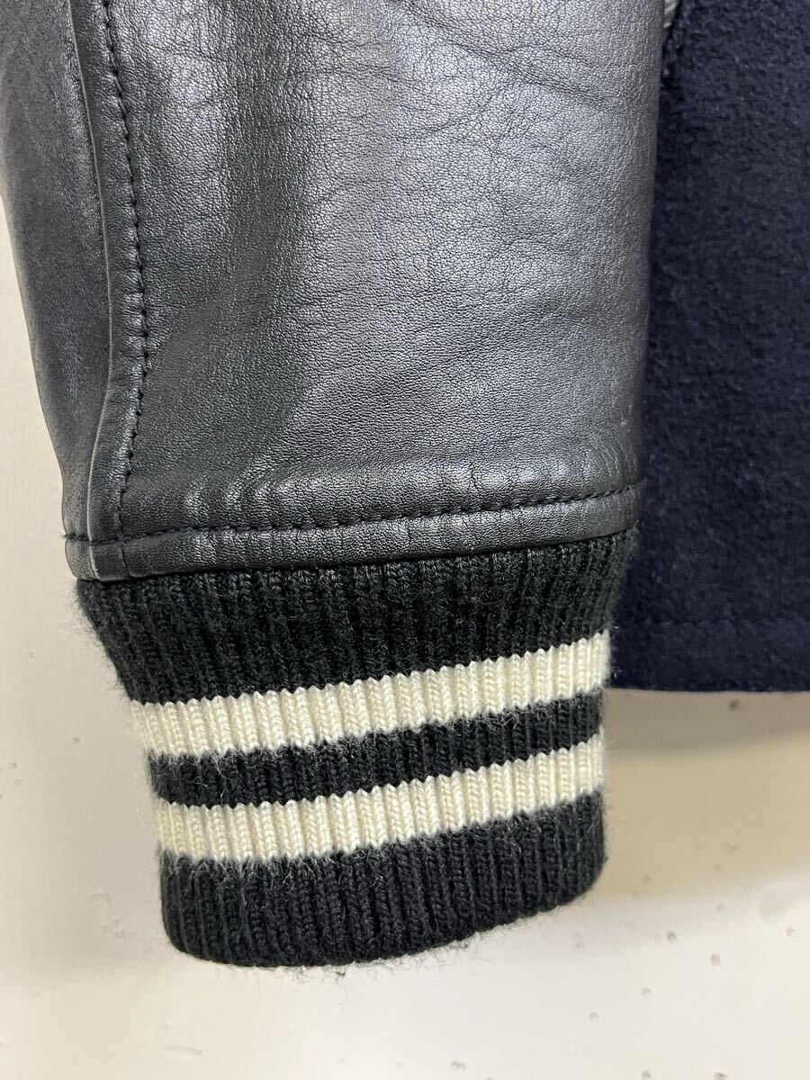 ジャーナルスタンダード アームレザー スタジャン スタジアムジャケット 紺 黒 メンズM になります。