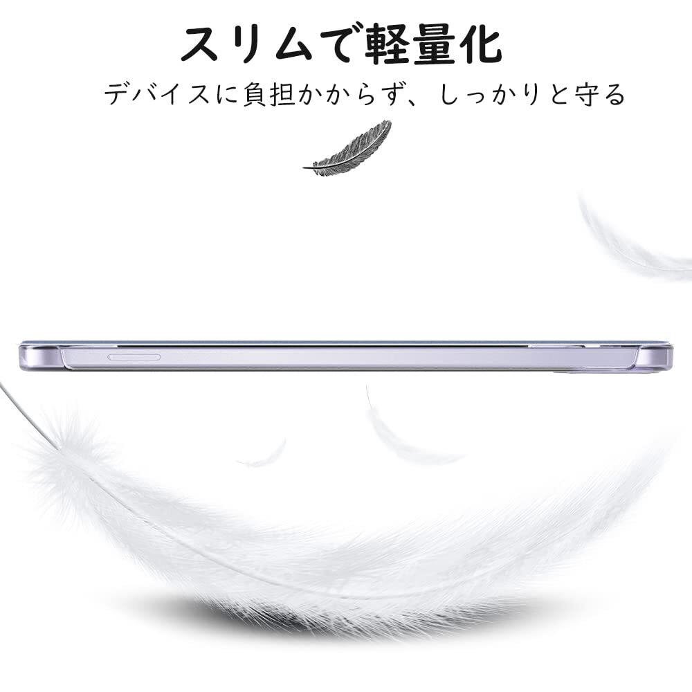「上質な素材採用」蓋は手触りが良く高級感のあふれる耐久性に優れた高級PUレザーで、バックケースは頑丈で耐摩耗性の高い半透明のPC素材を採用しており、内部材質は液晶表面に優しいマイクロファイバーの仕上がりで、タブレットに最高の保護力を提供してくれます。