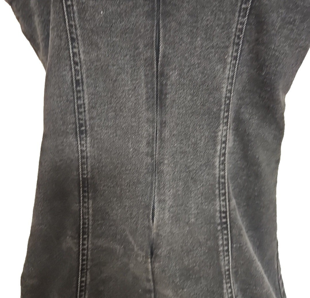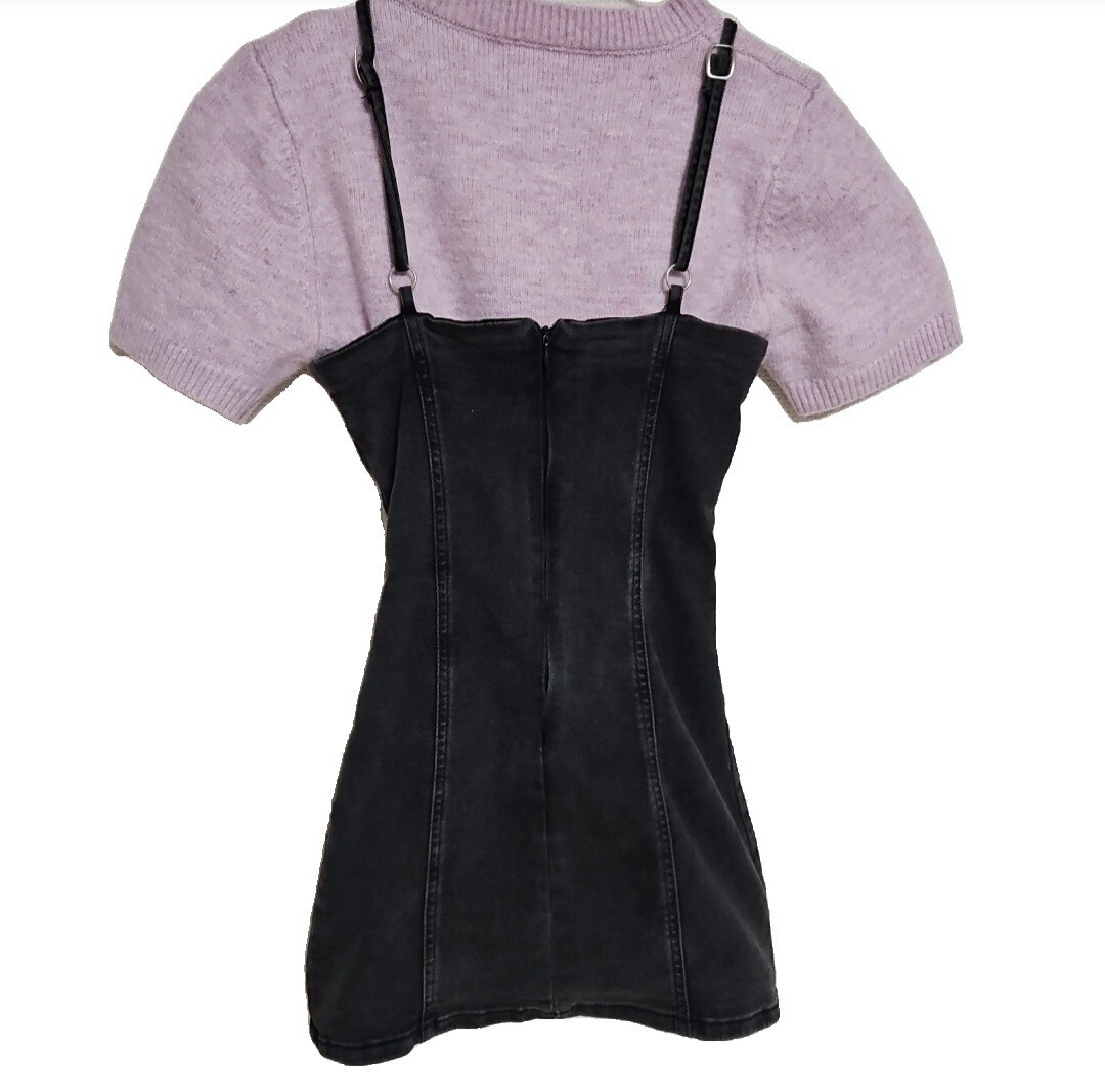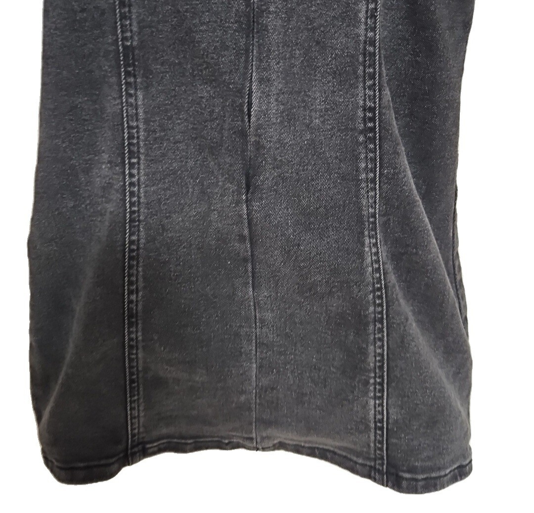 デニム素材のレースアップノースリーブミニワンピース、タイトフィットデザイン。