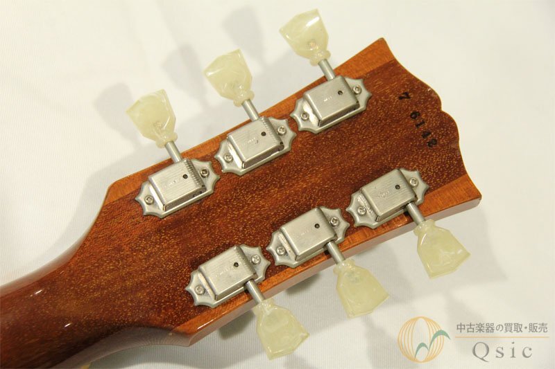 | 商品説明 | Gibson Custom Shop Historic Collection 1957 Les Paul Reissue Gold Top 1957年仕様のレスポールリイシューが入荷いたしました。 チューン.O.マチック仕様ハムバッカー搭載のゴールドトップです。 1957年はレスポールにPAFが初めて搭載された年式でもあります。 太いマホガニーネックらしい鳴り 指板のローズウッドは黒い杢が多く入っており、上質な材が使用されていることが明白です。 ピックアップがRAW VINTAGE製に交換されています。 出力は低めの設計で、手元のニュアンスはよく拾います。指でつま弾くのとピックとの差で出音の違いに驚かれることでしょう。 倍音を感じさせブライトかつクリアでありながら、基音の伸びもよく、低域の太さ押し出し感は電装系のパワーだけでない木部の鳴りをリアルにアウトプットしているのを感じます。 使用感はございますが、サウンド面やプレイに関わる部分のコンディションは良好です。 なによりもやはりゴールドトップはルックス面に華があるのが魅力です。 【Spec】 Body:Maple Top, Mahogany Back Neck:Mahogany Fingerboard:Rosewood 【状態】 シリアルナンバーより1996年製。 ロッドカバー、スイッチプレートに割れがございます。経年によるパーツのくすみや日焼けがございます。ヘッド先やボディ全体に打痕や塗装のウェザーチックやクラックが見られ、年式相応の使用感がございます。 6弦のペグブッシュまわりに小傷があり、塗装の線傷も見受けられます。 ペグはセンターにクルーソンロゴ入りですが、ボタンの色などからペグも交換されているものかと存じます。 ピックアップがRAW VINTAGE製に交換されており、オリジナルのピックアップは欠品しております。 フレット残り:7~8割程度(ロー側にうっすら減りがありますが、ひっかかりや溝はありません) トラスロッド:余裕あり 電気系統:問題なし 重量:4.28 kg ネック:問題なし 【調整内容】 全体クリーニング ネック調整 弦高調整 オクターブ調整 電装系クリーニング 「万が一、気に入らなければ返品OK!」で大変ご好評をいただいております、 通信販売における最大のご不安を払拭した『納得購入サポート™』ですが、 ヤフオク!におきましては、2020年2月1日よりサービスの提供を終了いたしました。 詳しくは、ヤフオク!でのサービス終了のお知らせ をご覧ください。 ヤフオク!でのご落札品は、当サービスの提供対象外でございます。 |