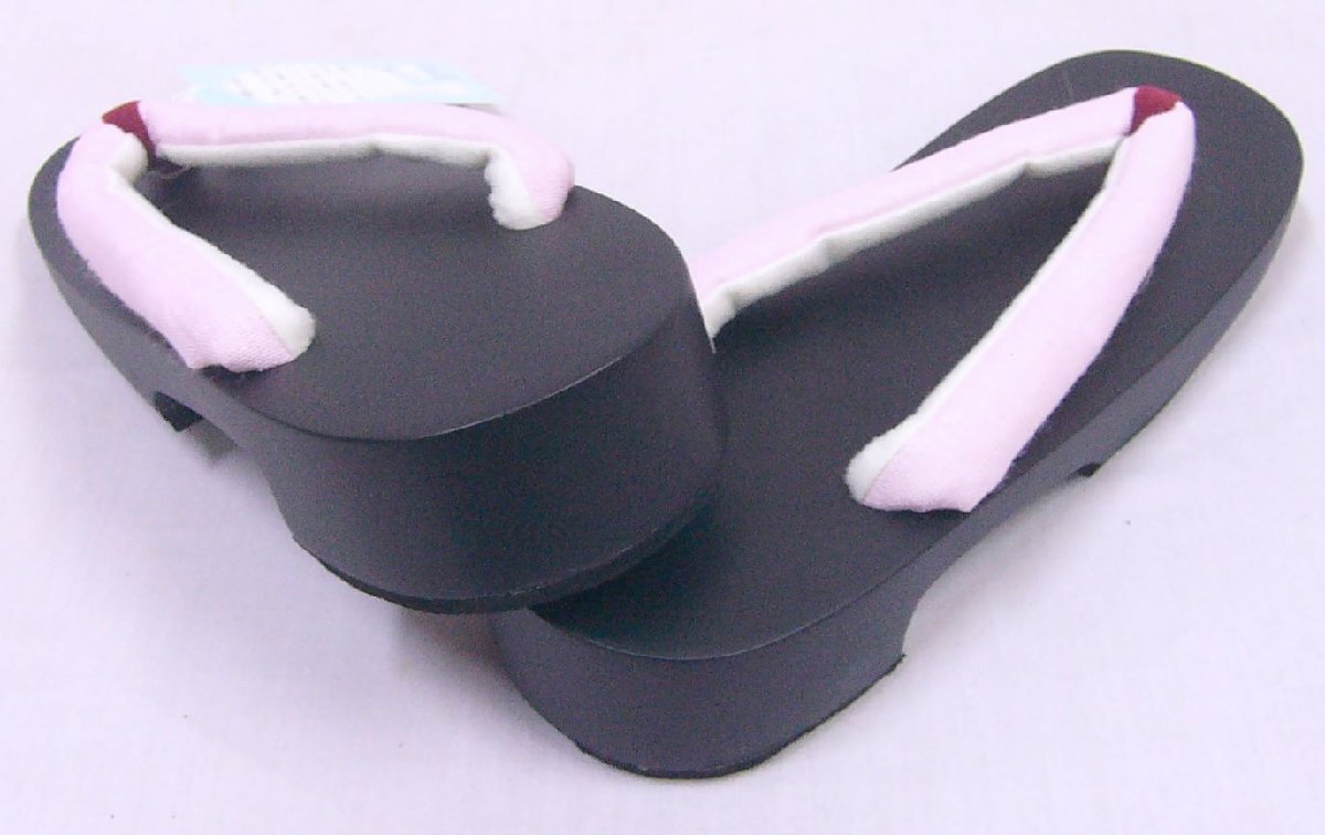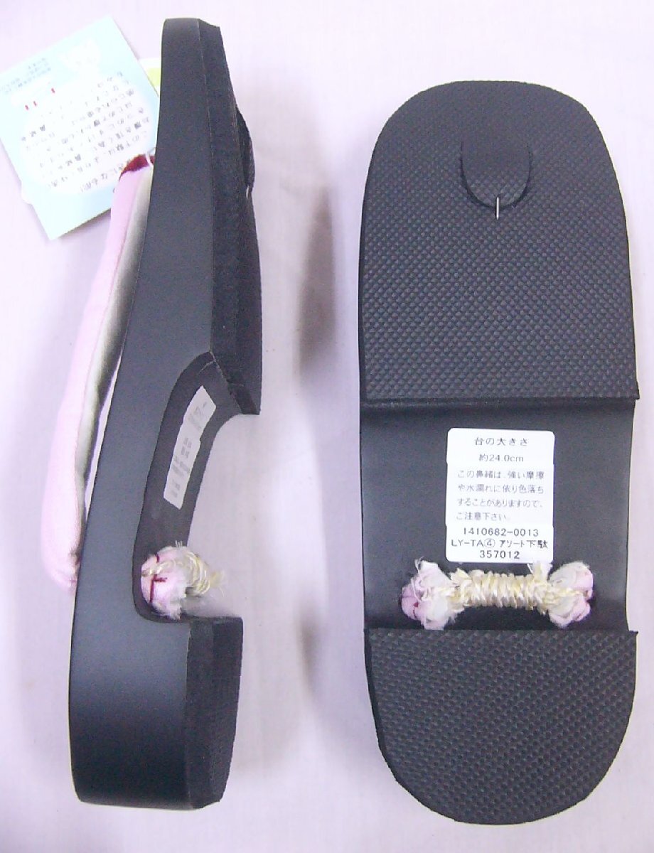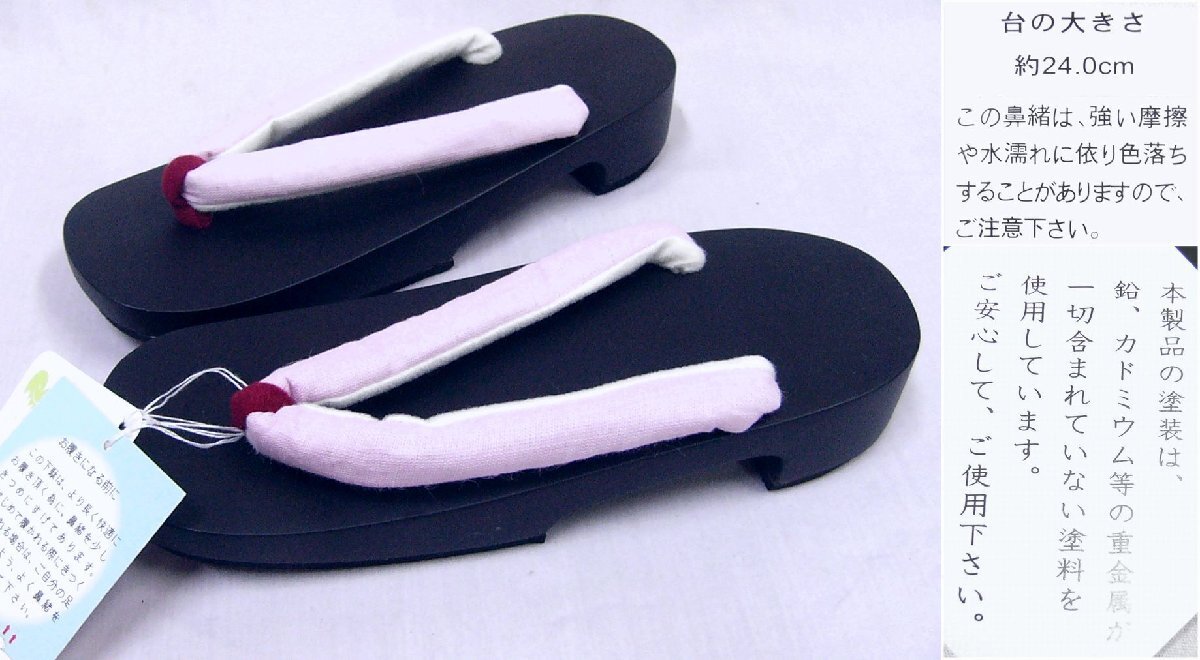 アウトレット 23㎝~24.5㎝の方に 黒色台の下駄 1007 薄ピンク色系の無地鼻緒 未使用・わけあり品
