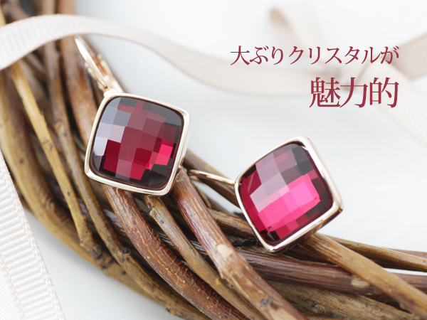 ルビークリスタルスクエアピアス