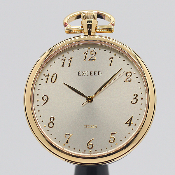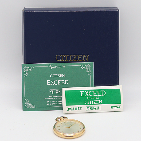 デッドストック級 保/箱付 稼働 美品 シチズン エクシード 0330-H06050 ゴールド文字盤 QZ 懐中時計 9798000 9PRY KTU ABCA16592