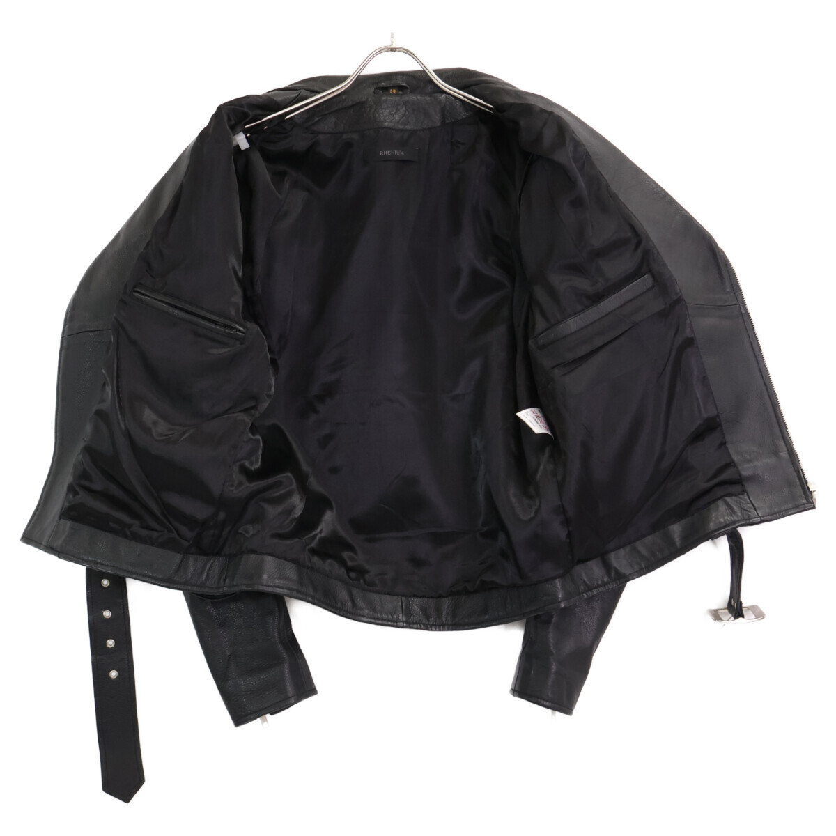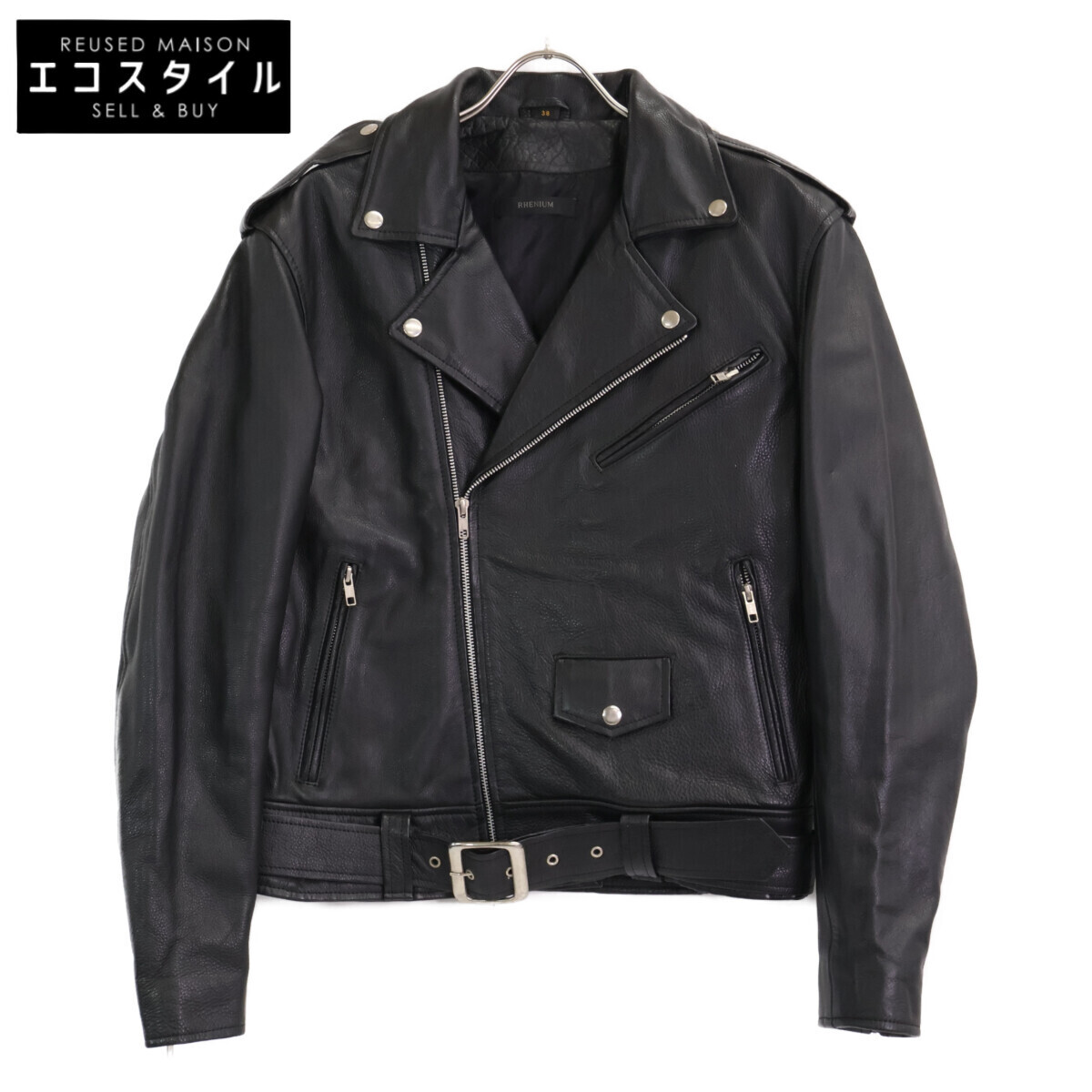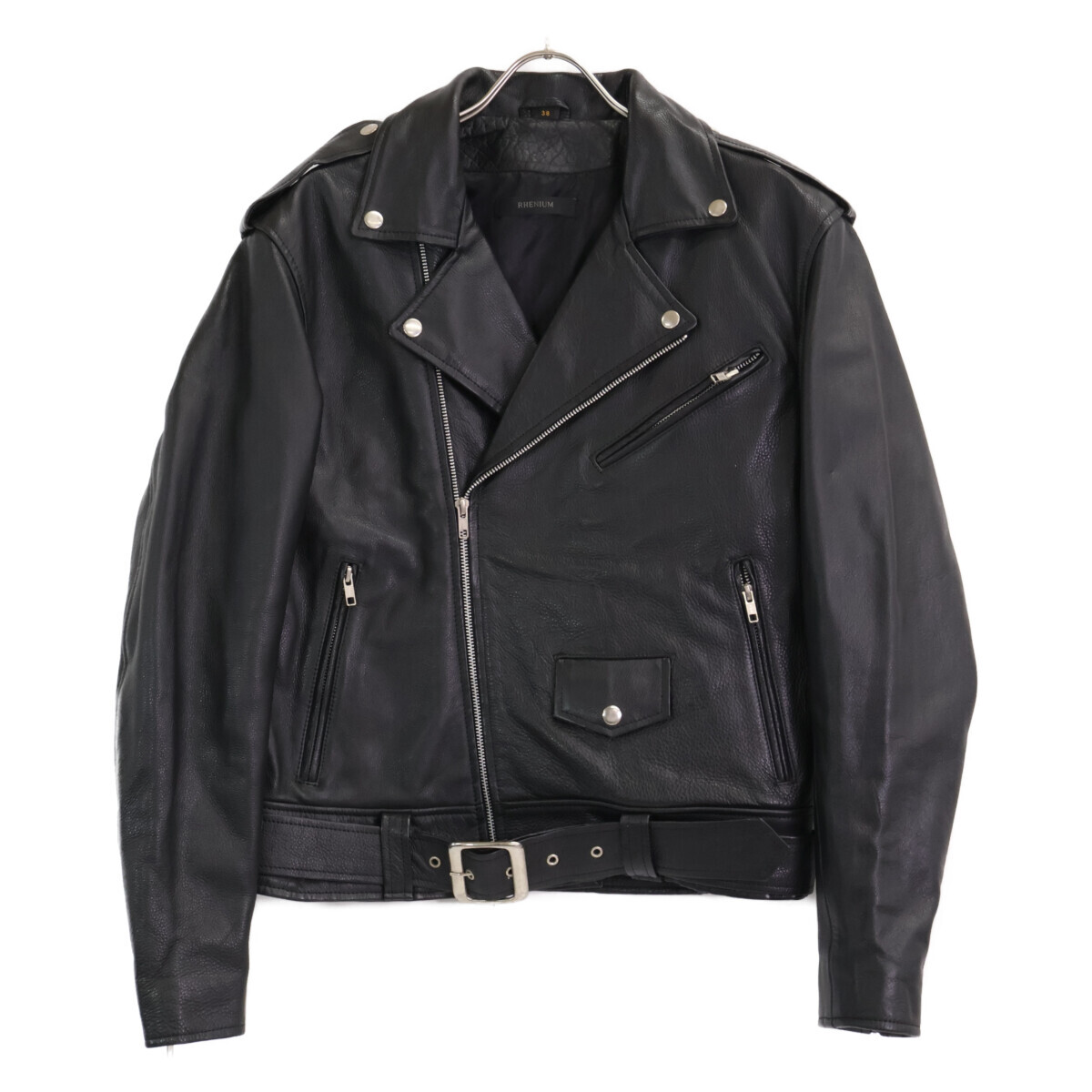 HIDEAWAYS ハイダウェイ 【RHENIUM】ブラック カウハイド ダブルライダースジャケット ブラック 38 ジャケット レザー メンズ 中古