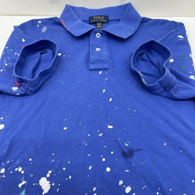 ポロラルフローレン キッズ ペイント スプラッター コットン 半袖 ポロシャツ ポニーロゴ 刺繍 子供服 XL