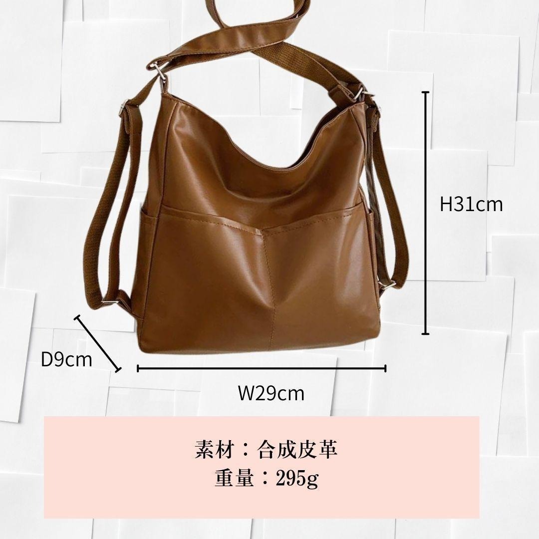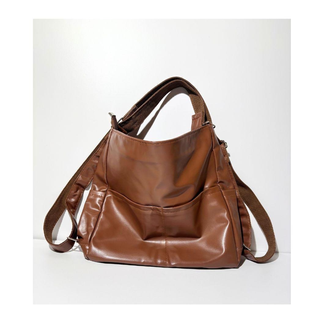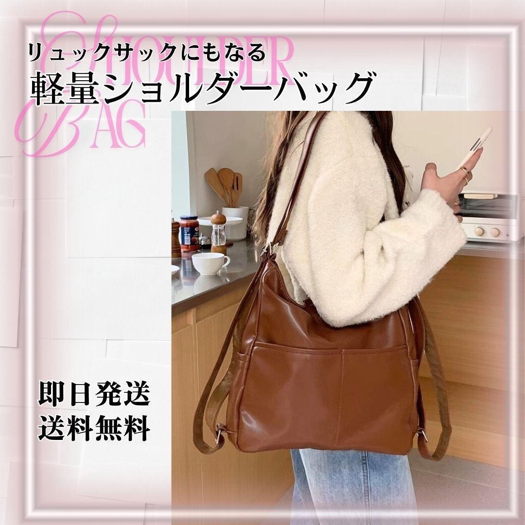 軽くてたくさん入る、ブラウンのカジュアルショルダーバッグ。斜めがけにも、リュックサックにも早変わり。その日の気分でチェンジ可能