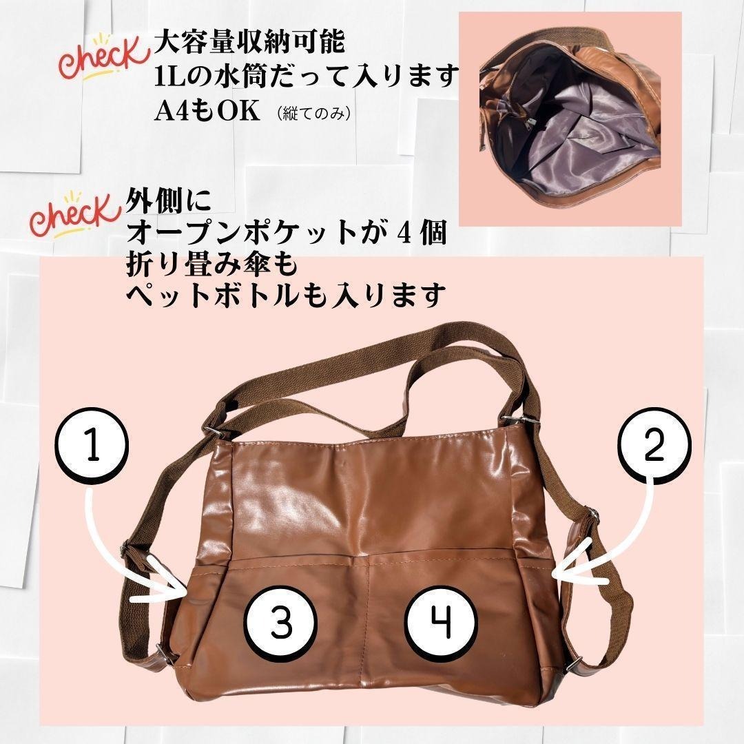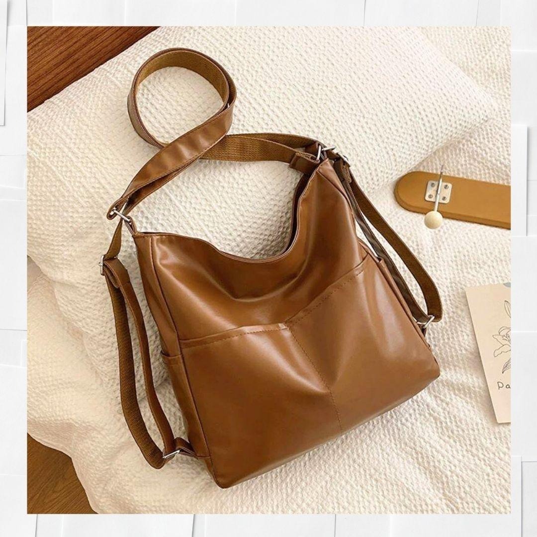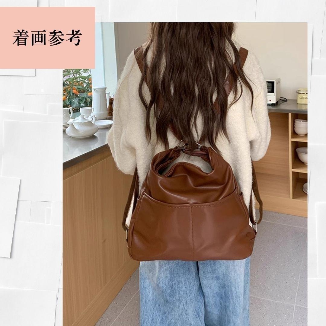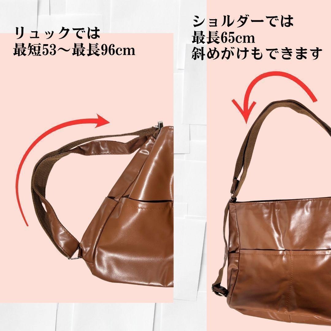 軽くてたくさん入る、ブラウンのカジュアルショルダーバッグ。斜めがけにも、リュックサックにも早変わり。その日の気分でチェンジ可能