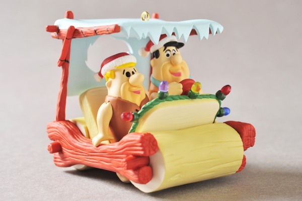 サンタの帽子をかぶってドライブ中のフレッドとバーニーの素敵なクリスマスオーナメントです。