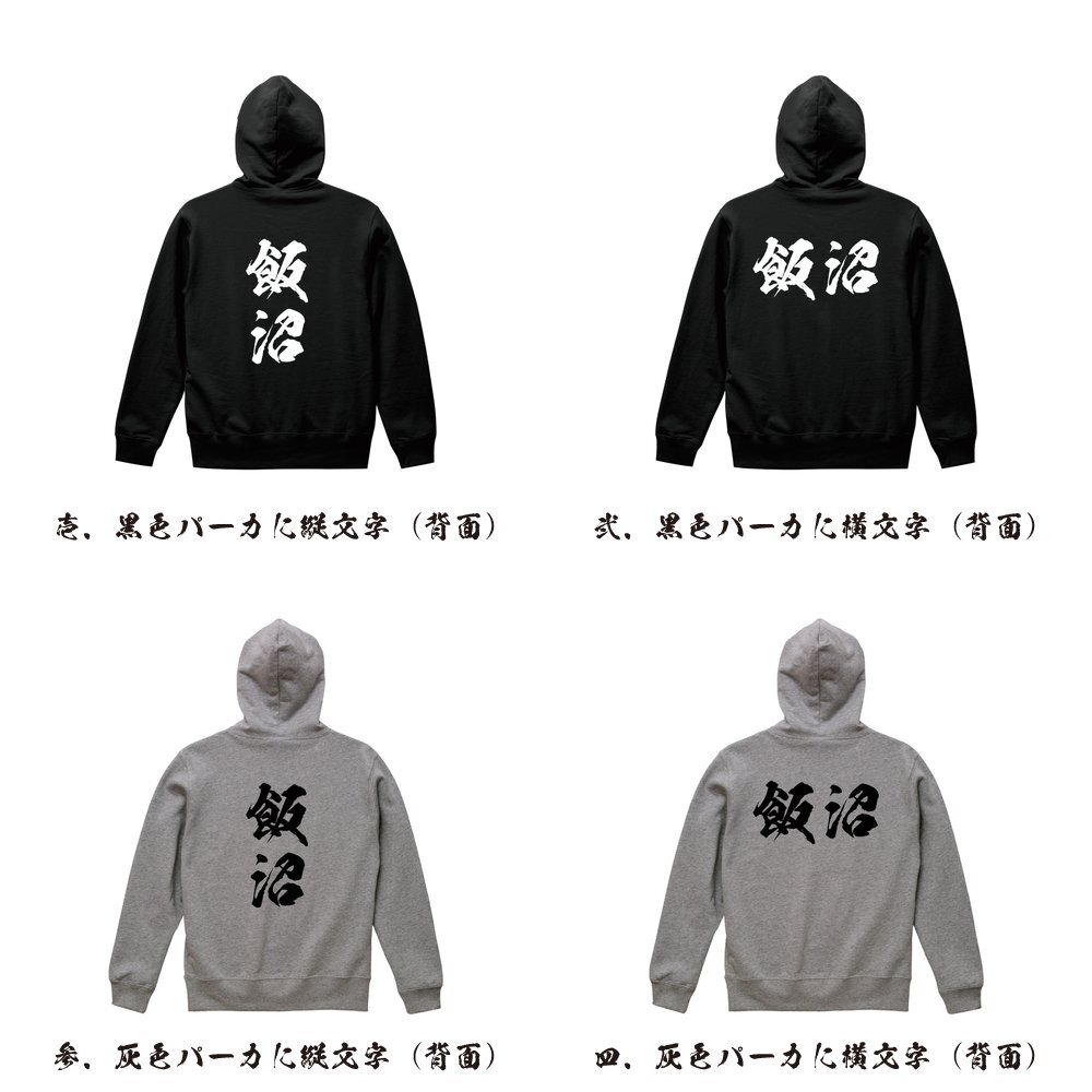 飯沼 書道家が書く デザイン フルジップ パーカ 【 名字 】 メンズ レディース キッズ