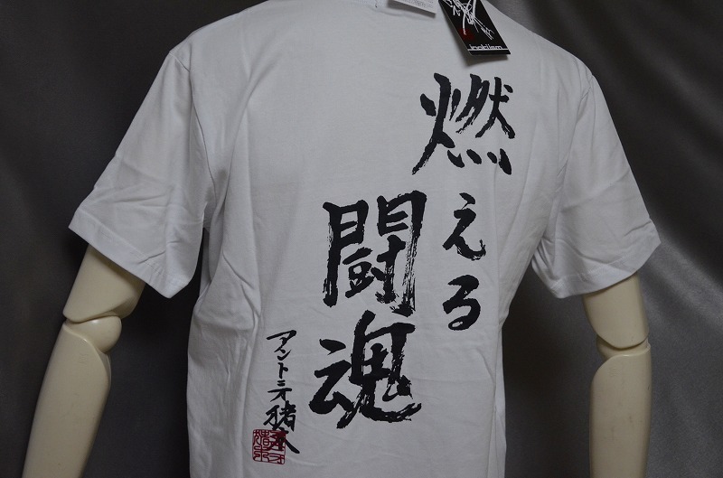 新品 L アントニオ猪木 燃える闘魂 新日本プロレス メンズ Tシャツ 半袖 綿 100% 白 ホワイト