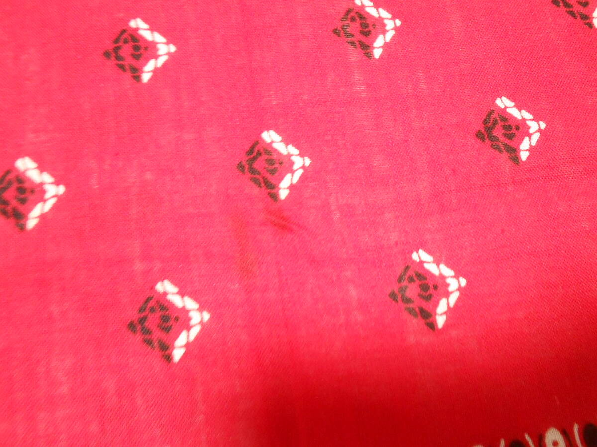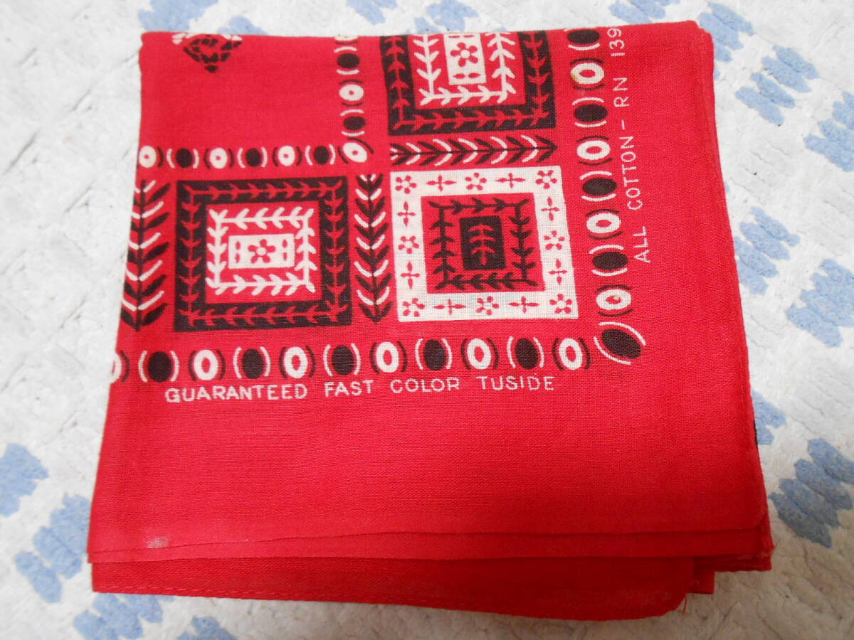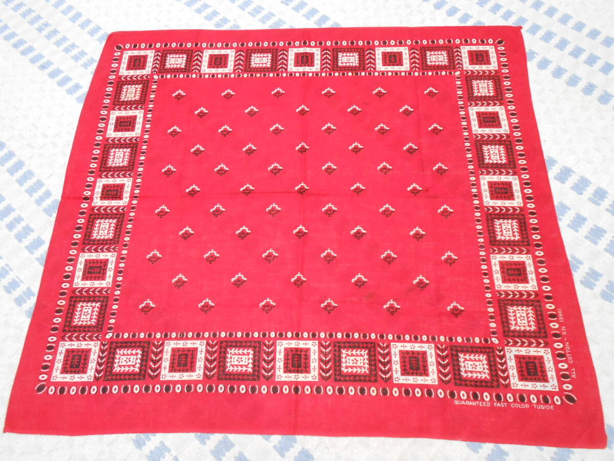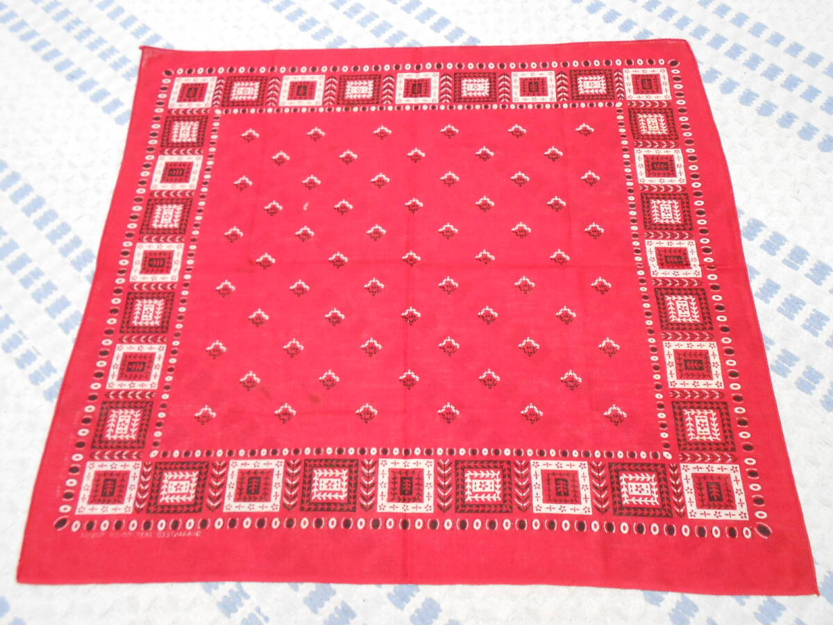 ビンテージ USA製 バンダナ レッド 赤 クッキー柄?GUARANTEED FAST COLOR TUSIDE ALL COTTON RN13961 アメリカ製 定形外発送可能