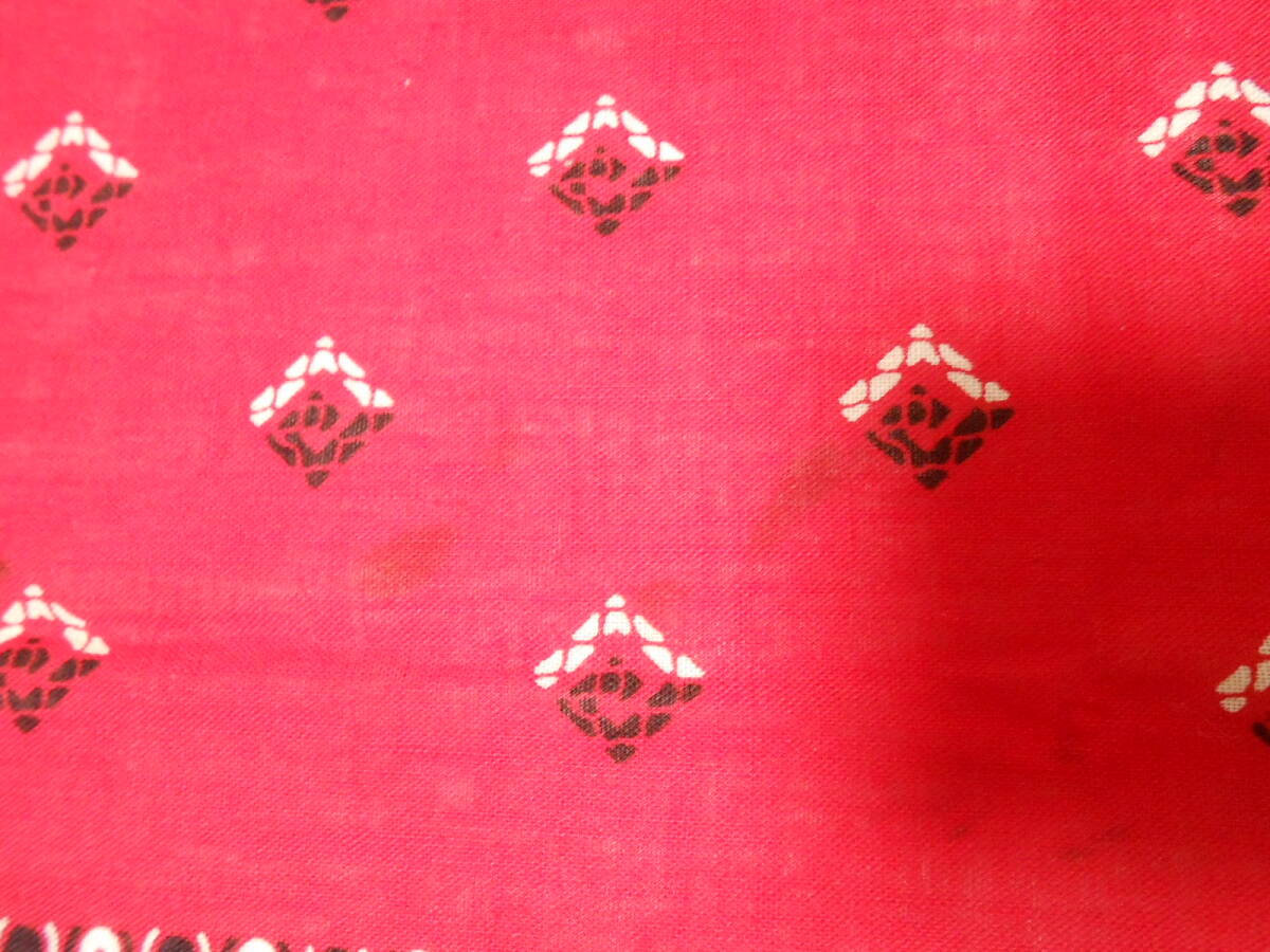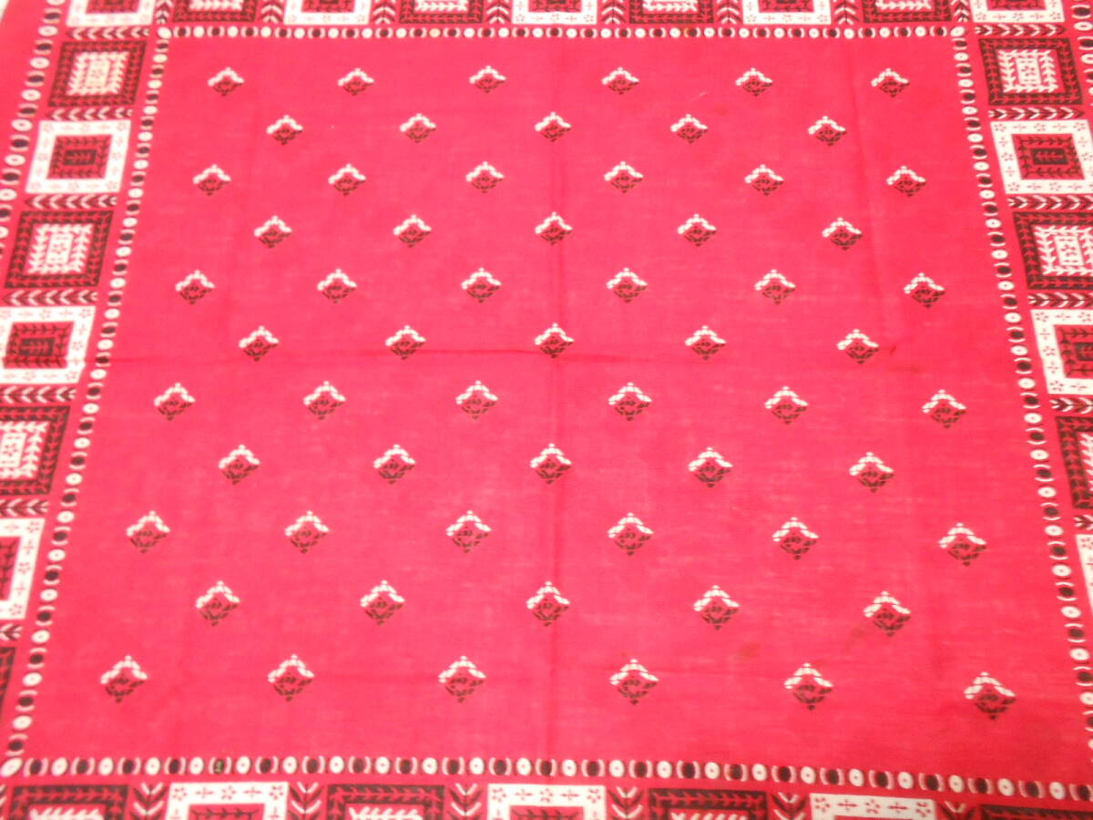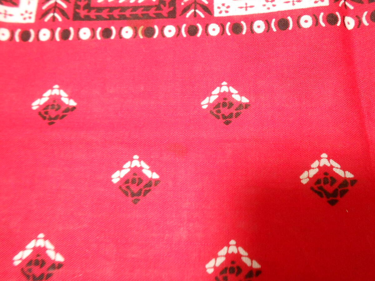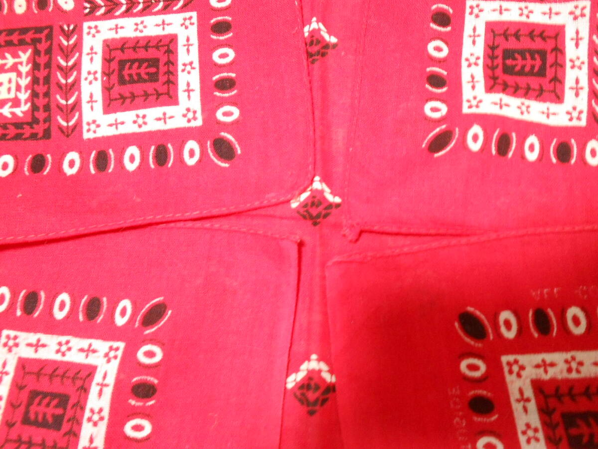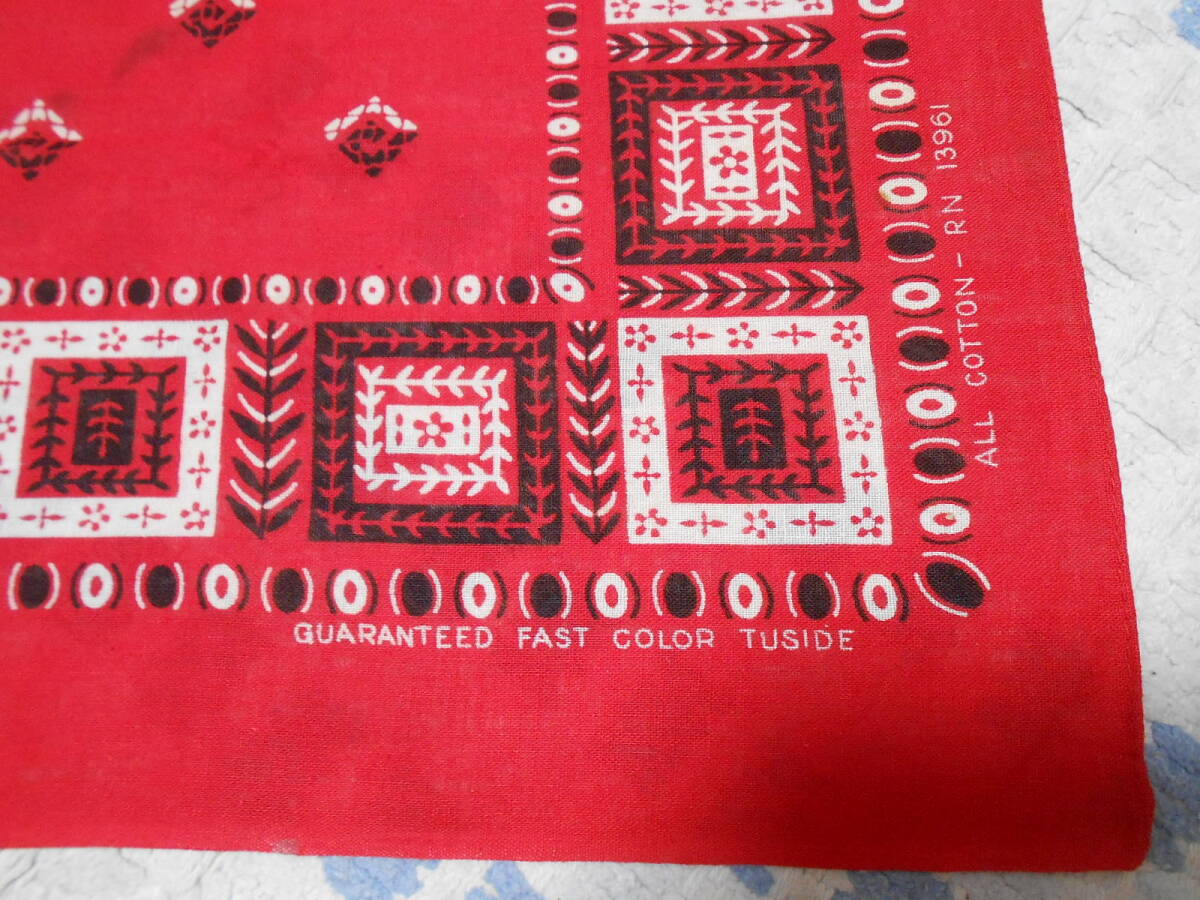 ビンテージ USA製 バンダナ レッド 赤 クッキー柄?GUARANTEED FAST COLOR TUSIDE ALL COTTON RN13961 アメリカ製 定形外発送可能