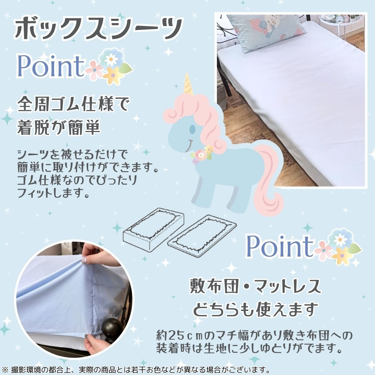 〇仕様 | ・枕カバー、掛け布団カバー、ボックスシーツの3点セットなので簡単にコーディネート。 |