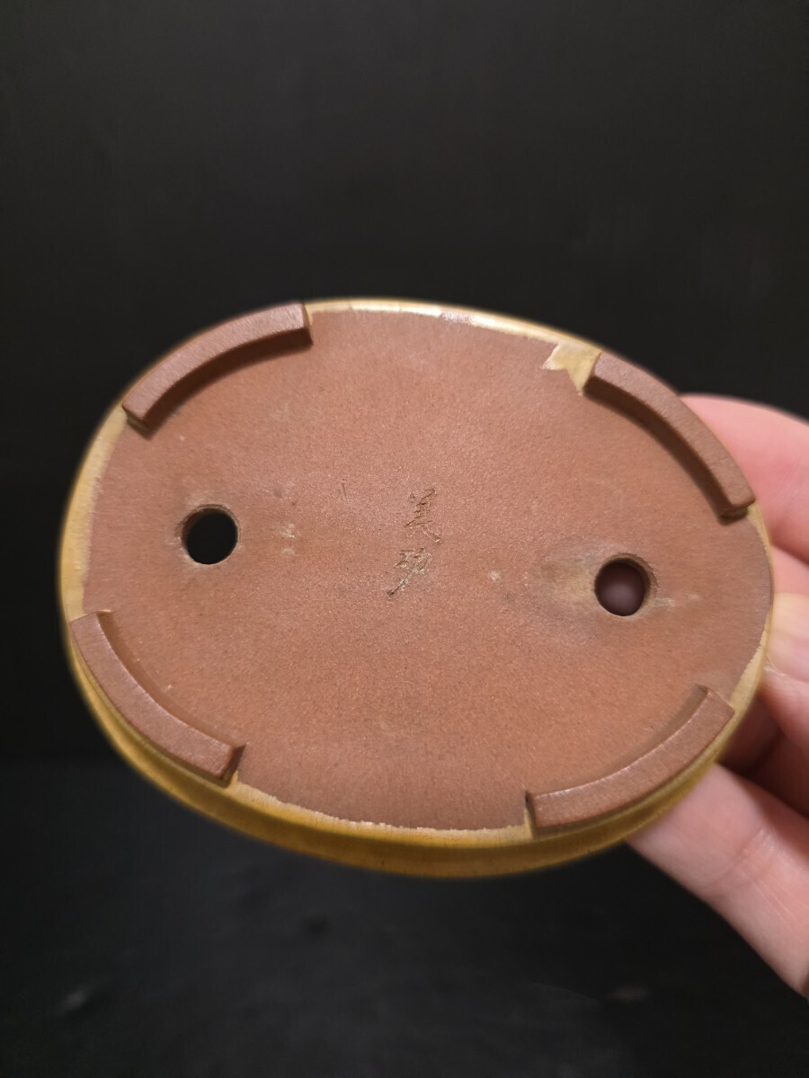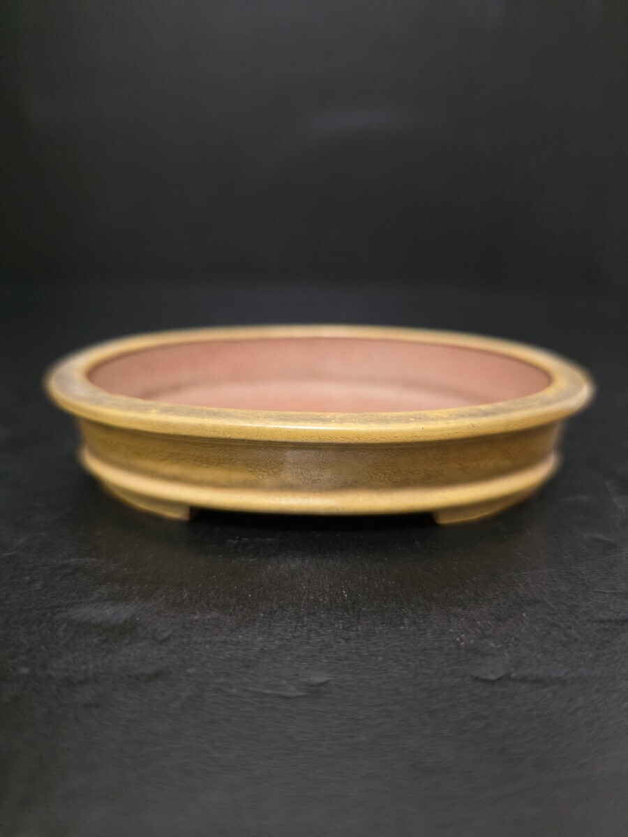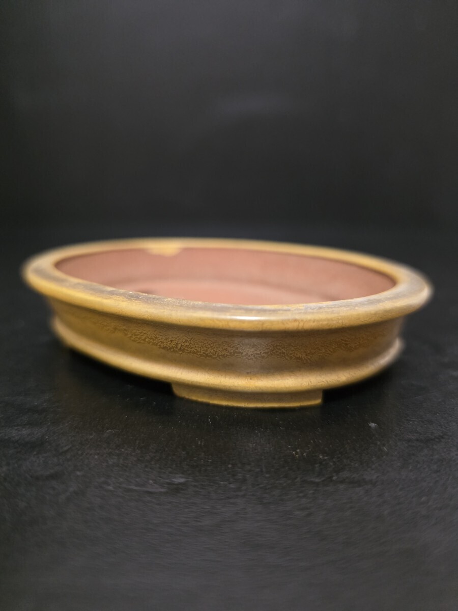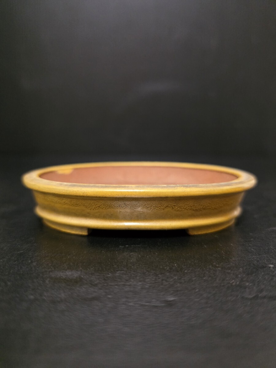 堀江美功の黄釉窯変外縁下紐楕円鉢になります。