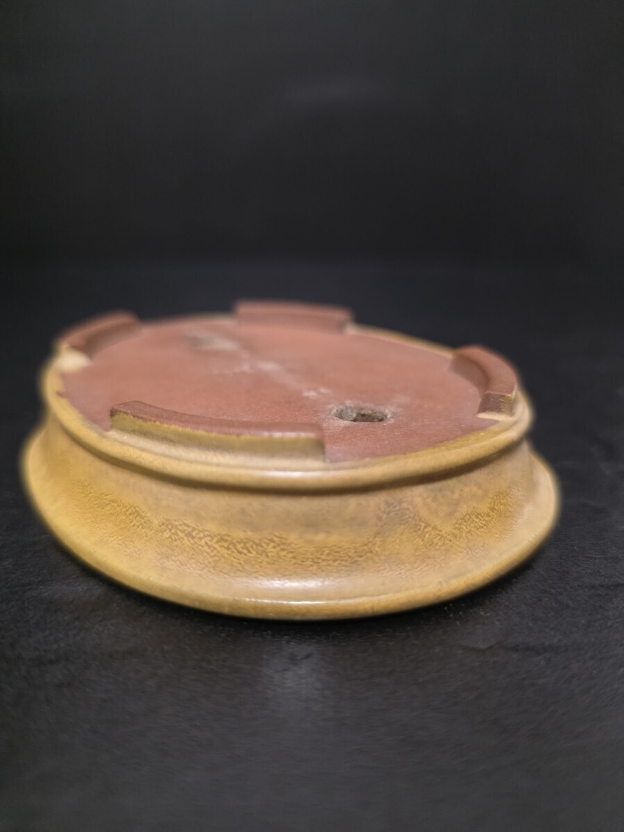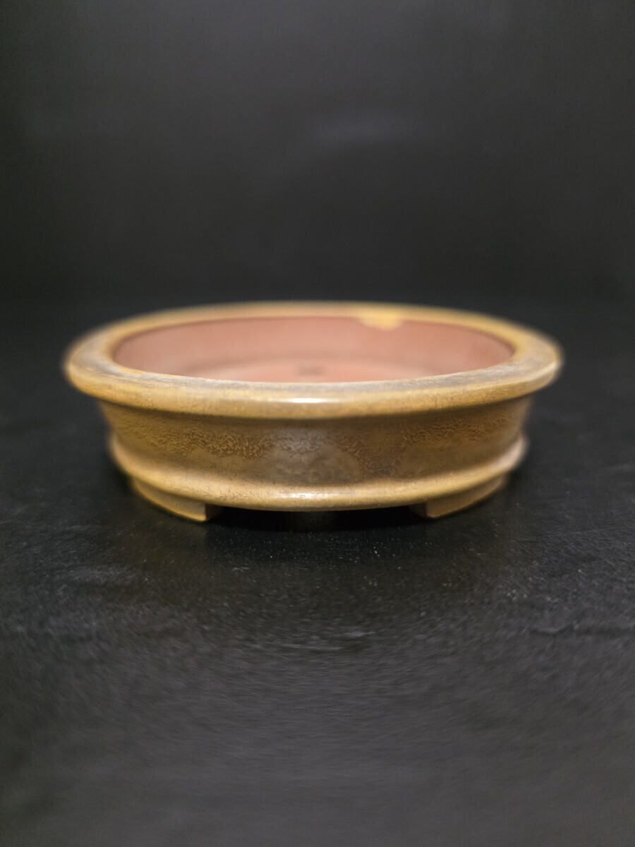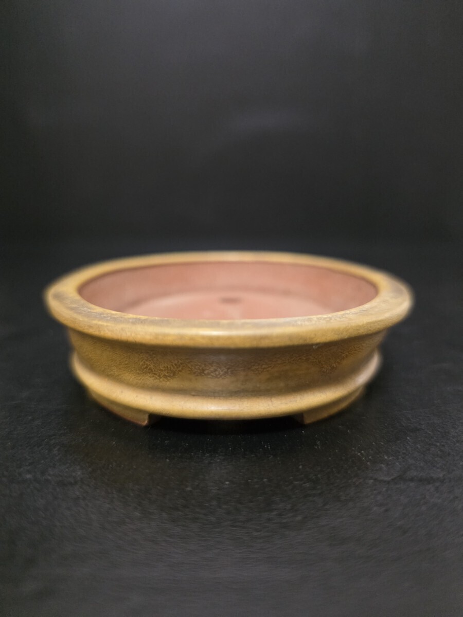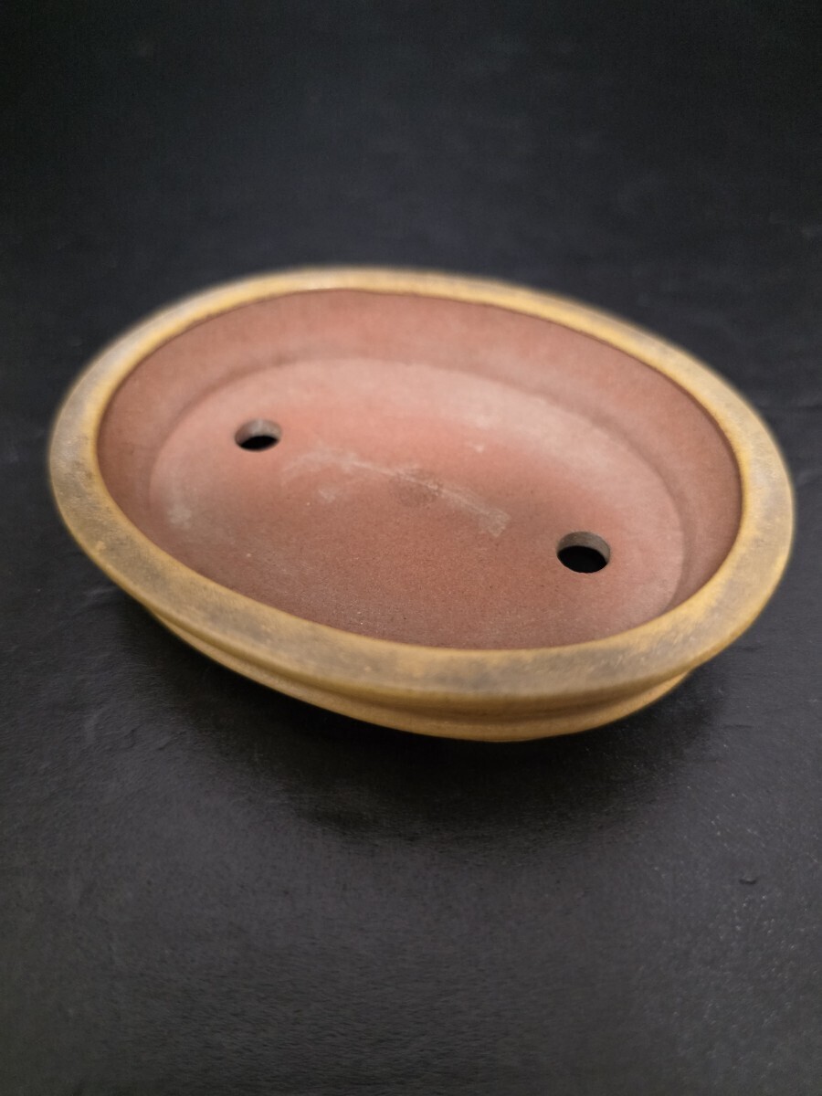 堀江美功の黄釉窯変外縁下紐楕円鉢になります。