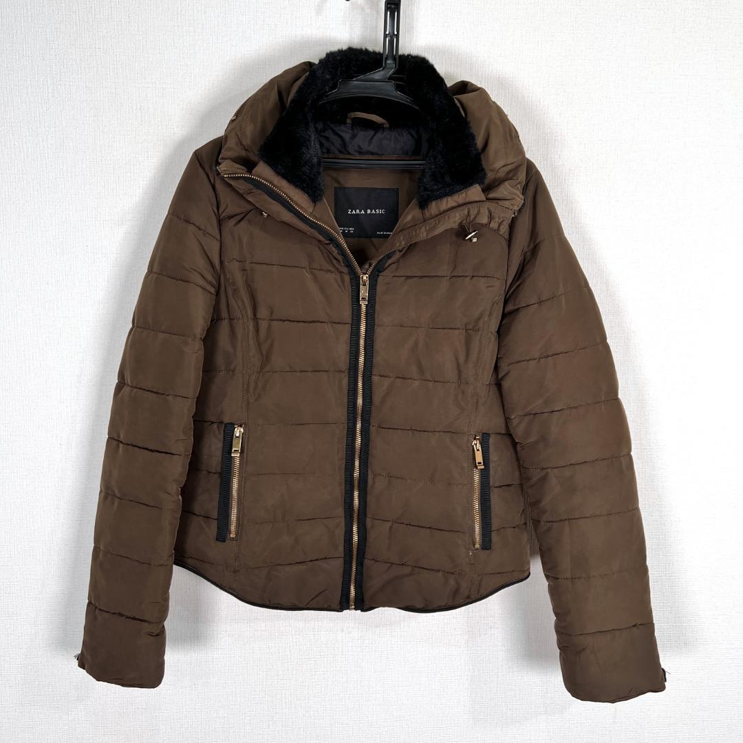 【ZARA BASIC】ザラベーシック ブラウン ダウンジャケット ジャンパー ブルゾン アウター コート 女性用 レディース Mサイズ【c006】