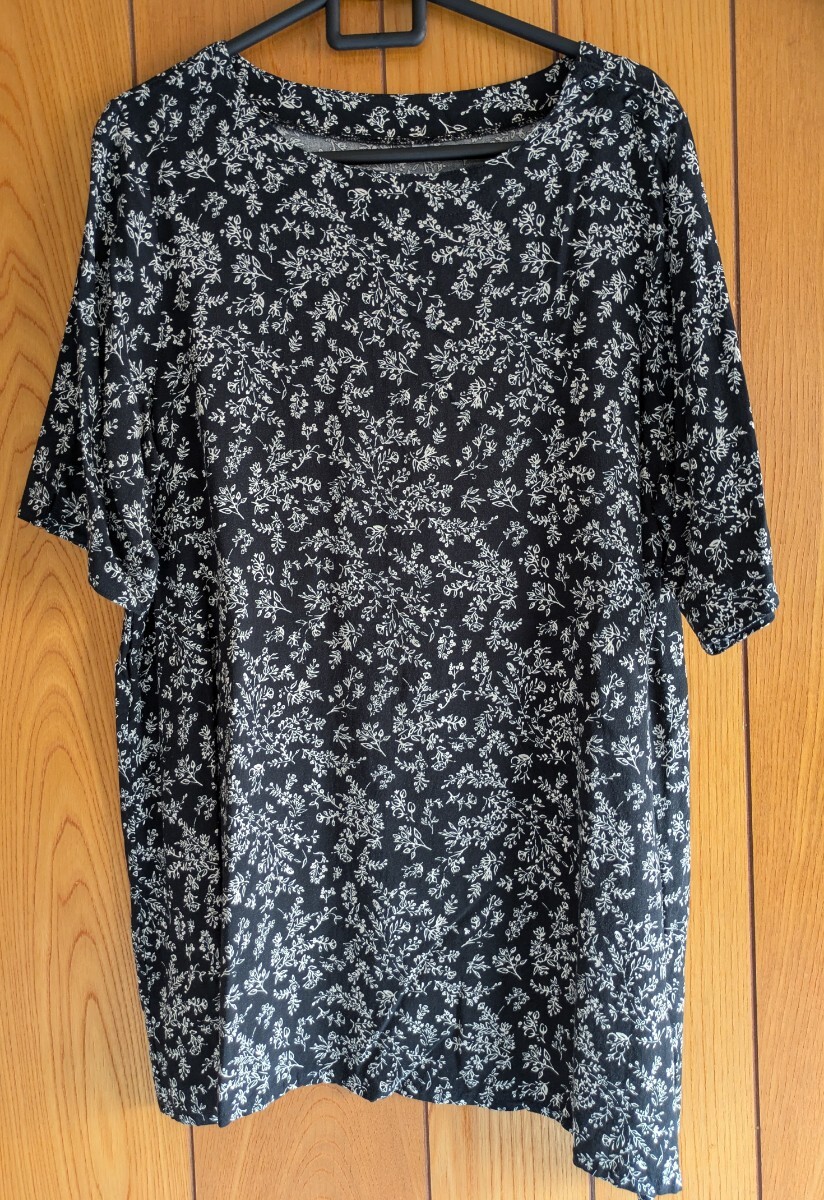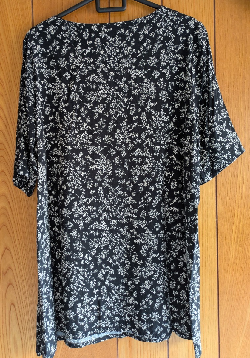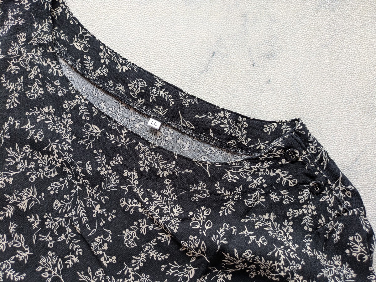 黒地にベージュの小花模様で、アクセサリーやスカーフでアレンジするのも楽しいです。