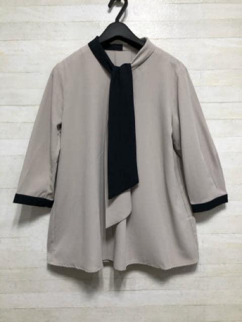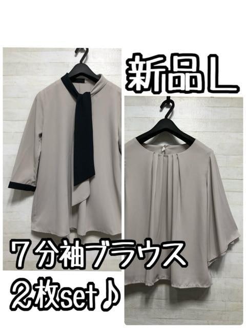 新品☆L♪グレージュ系♪7分袖きれいめブラウスを2枚セットで♪☆Q446