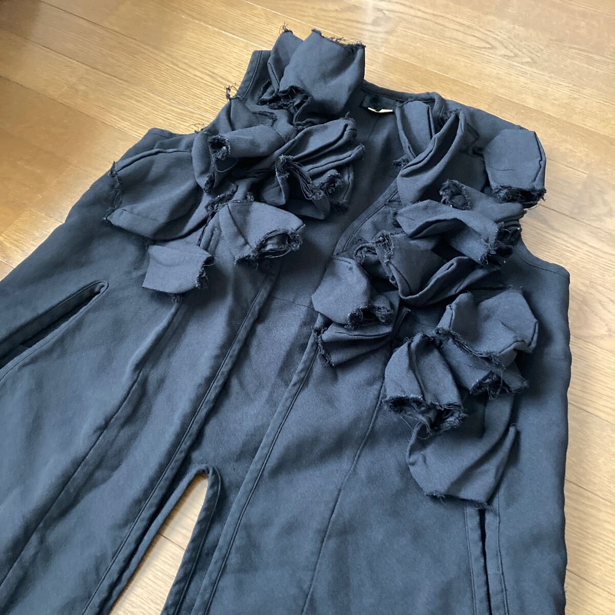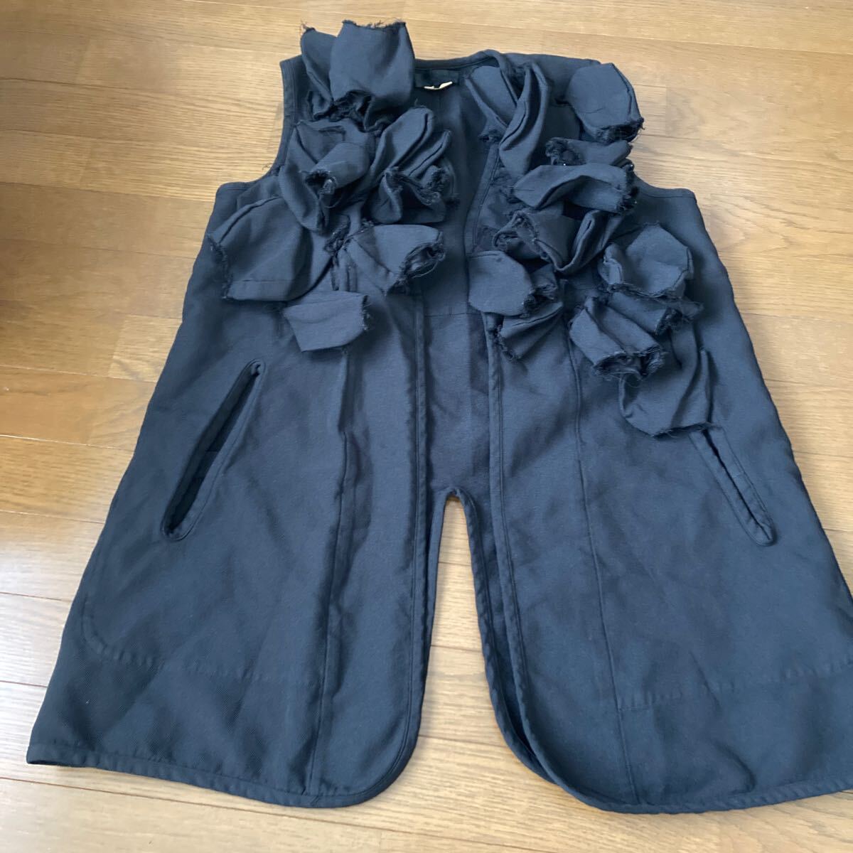 シンプルなフリル付です。Tシャツやシャツの上にサラッと羽織るだけでコムデギャルソンらしさが出ます。
