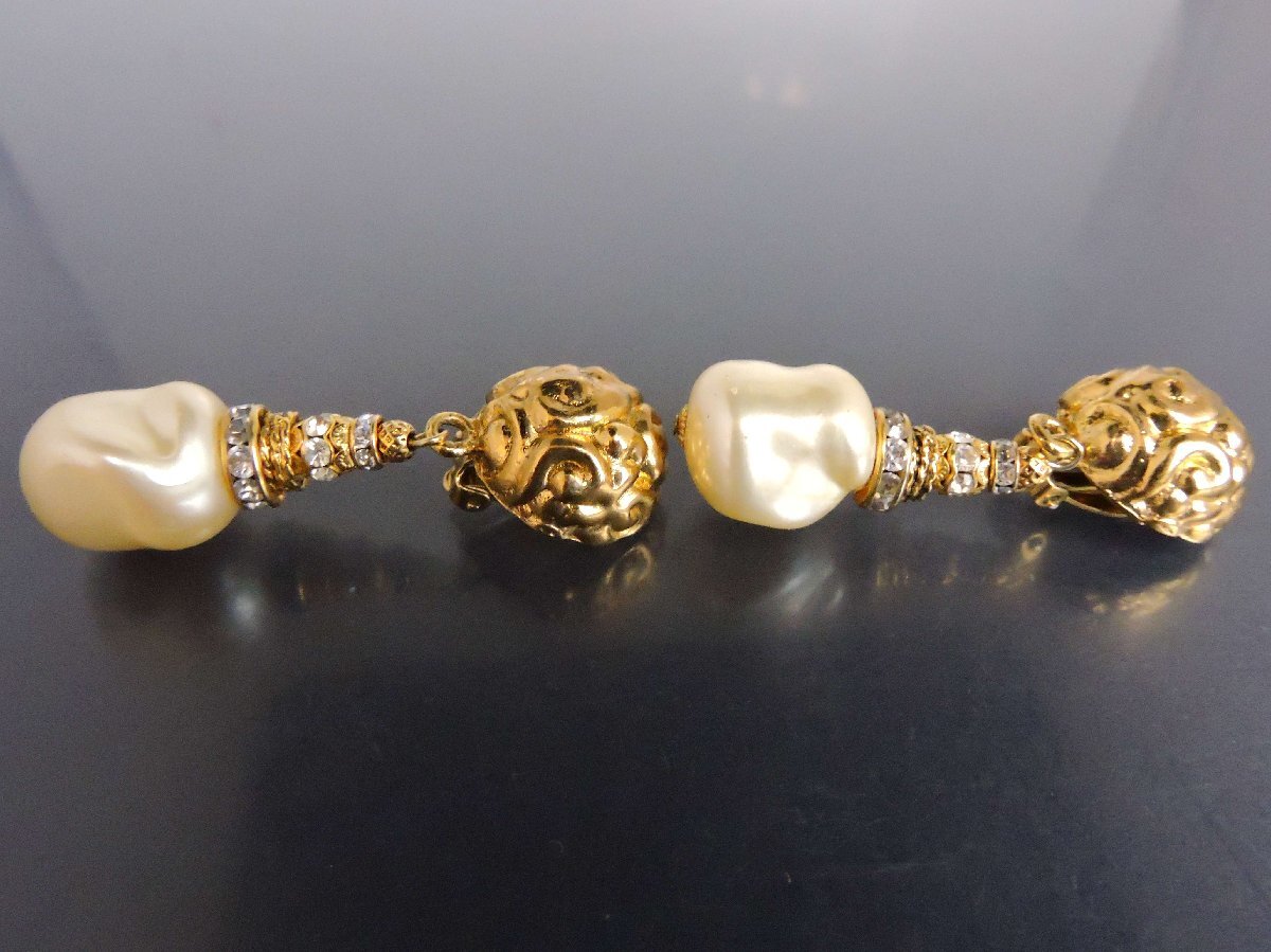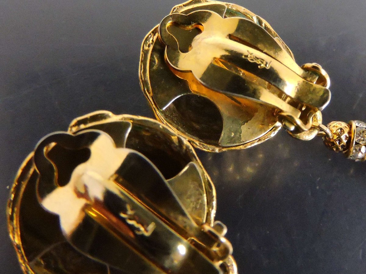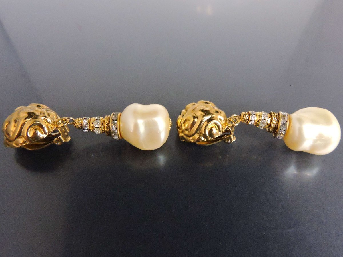 YSL イヴ・サンローラン イヤリング パール調 ラインストーン ゴールドカラー 縦約6㎝