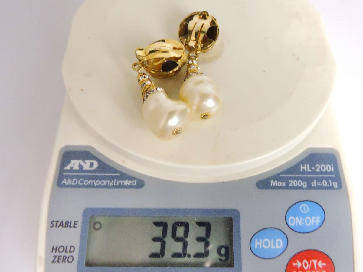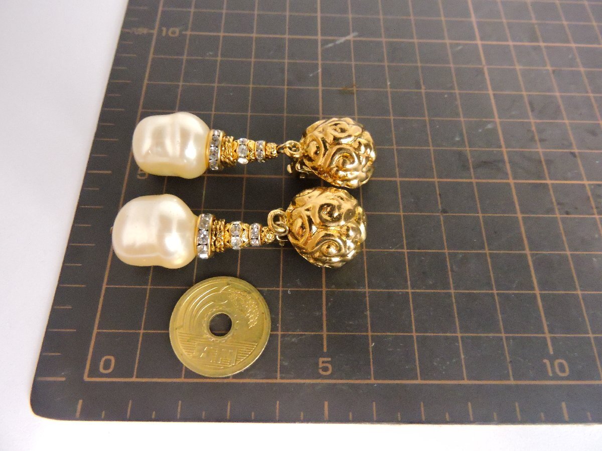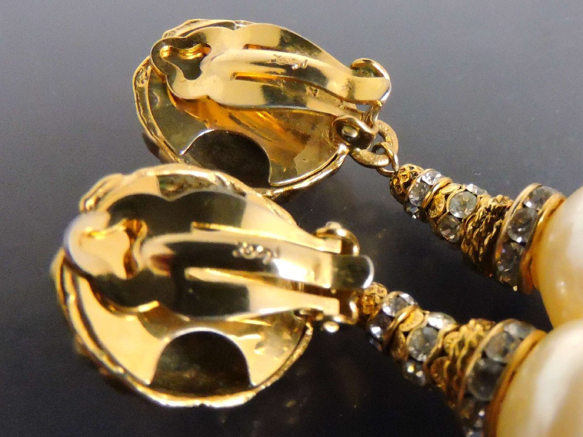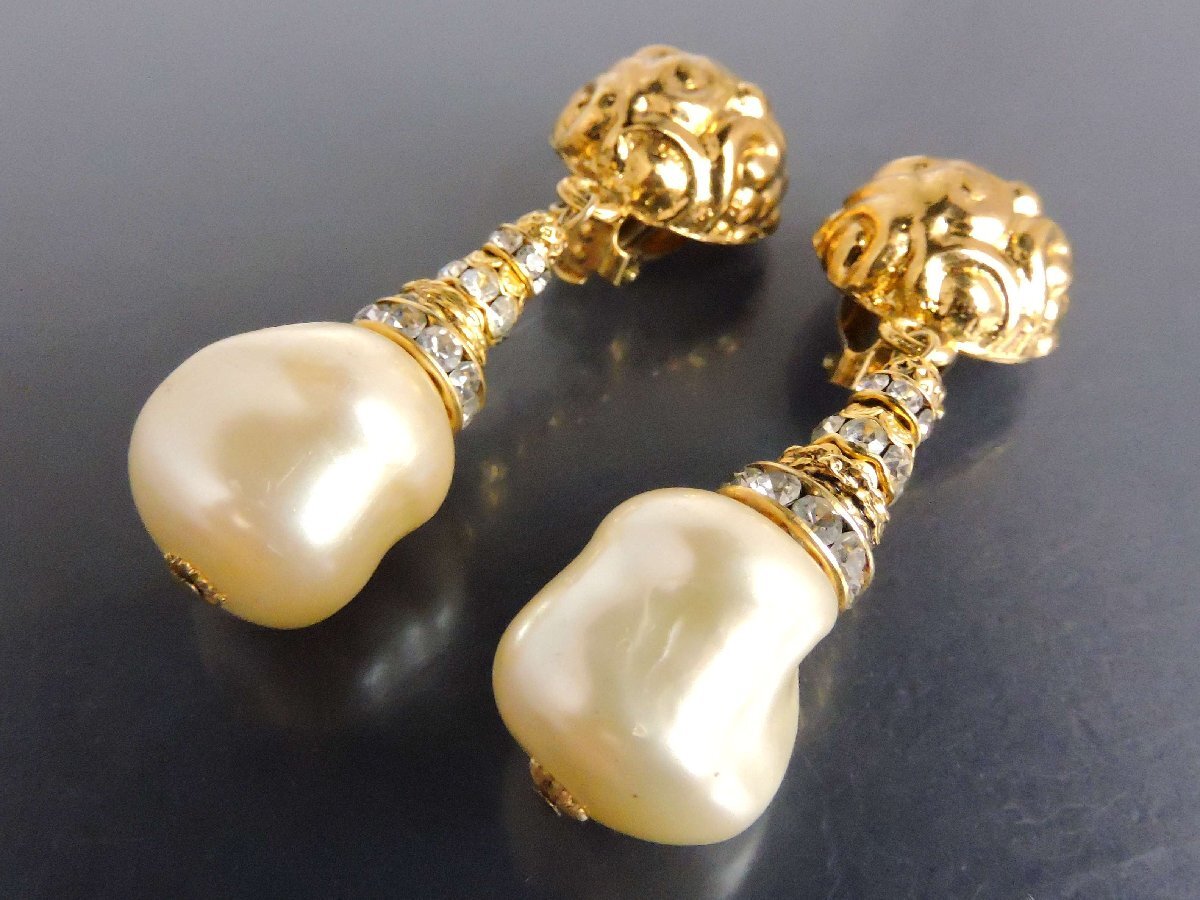 YSL イヴ・サンローラン イヤリング パール調 ラインストーン ゴールドカラー 縦約6㎝