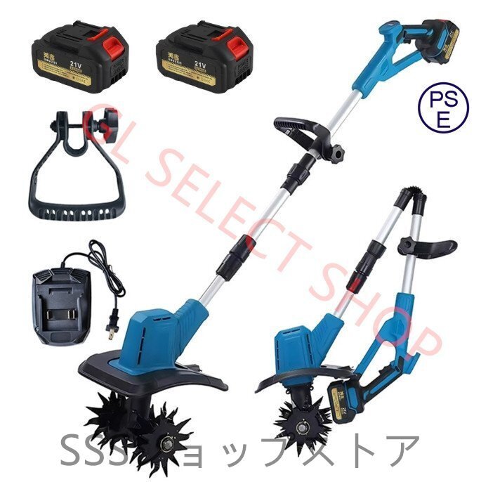 電動耕運機 充電式 小型 家庭用 電動耕うん機 バッテリー2個 コードレス 4枚刃 強力 ハイパワー マキタバッテリー併用菜園 農機具幅230mm