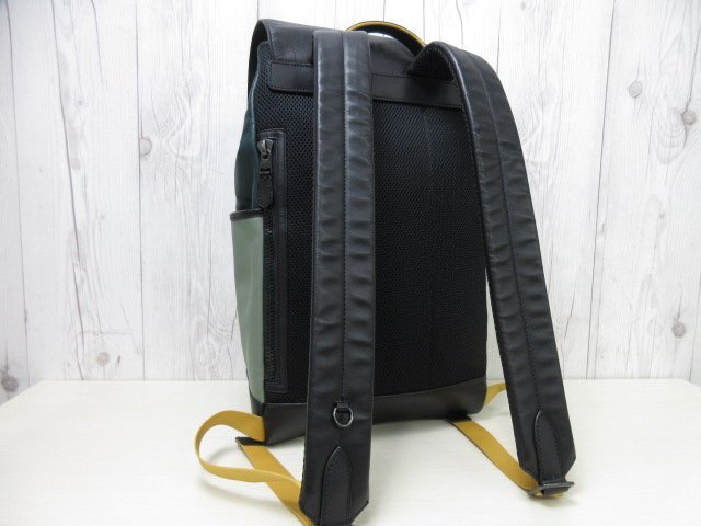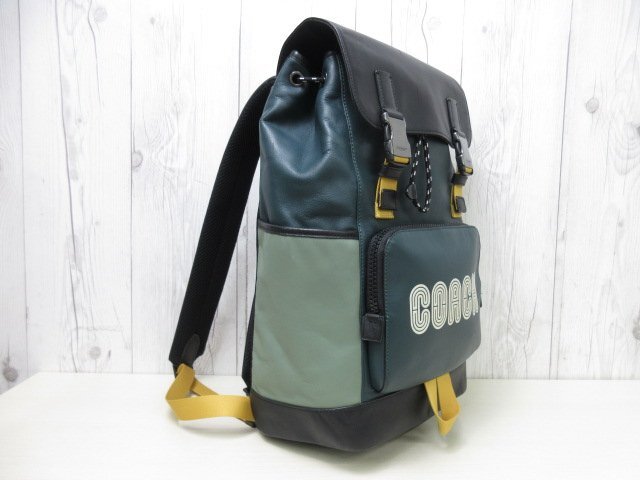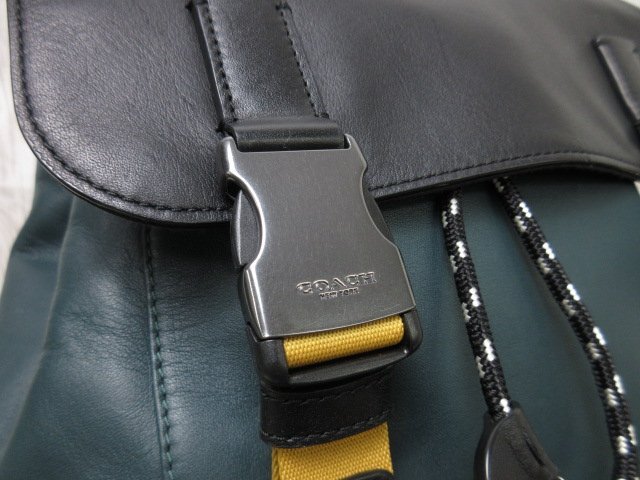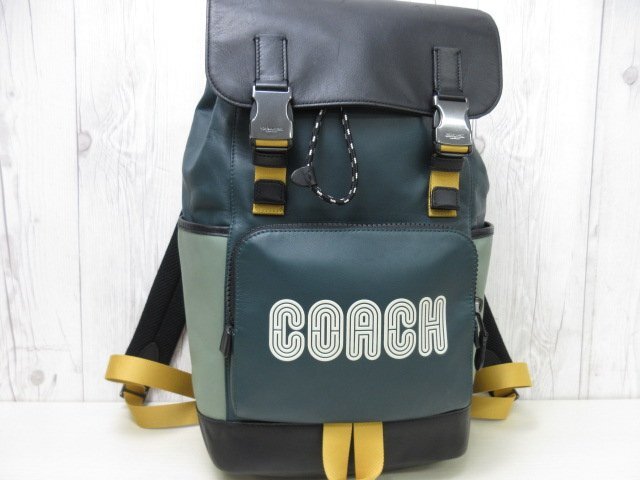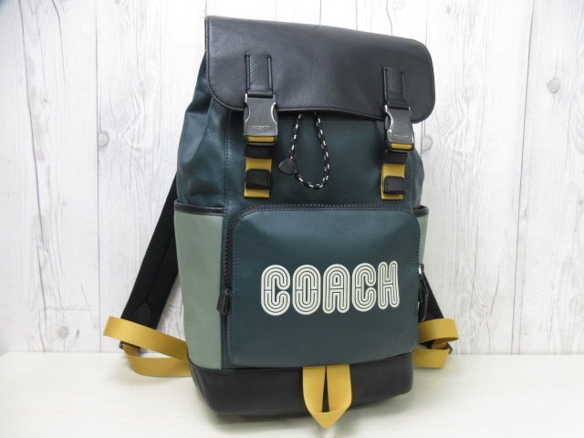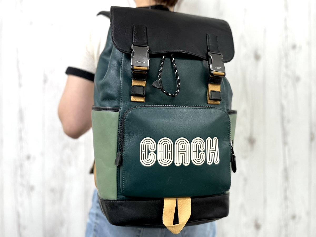 極美品 COACH コーチ バックパック リュックサック バッグ レザー 緑系×黒 A4収納可 メンズ 90209Y | ||