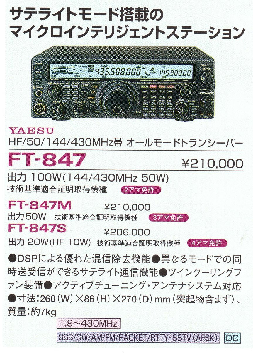 FT-847【YAESU】HF~430MHz(オールモード)100Wタイプ 動作確認済み | |||||||||||||||||||||||||||||||||||||||||||||||||||||||||||||||||||||||||||||||||||||||||||||||||||||||||||||||||