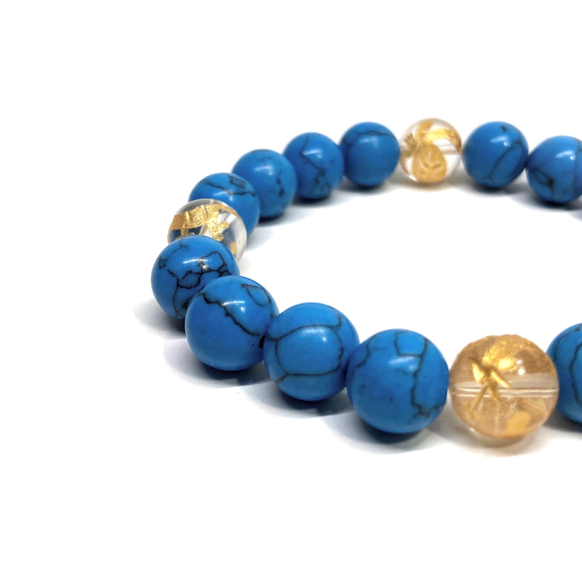 10mm 四神獣金彫水晶×ターコイズ パワーストーン ブレスレット天然石 運気上昇 開運 金運 恋愛運 青龍 白虎 玄武 朱雀 #1 ☆