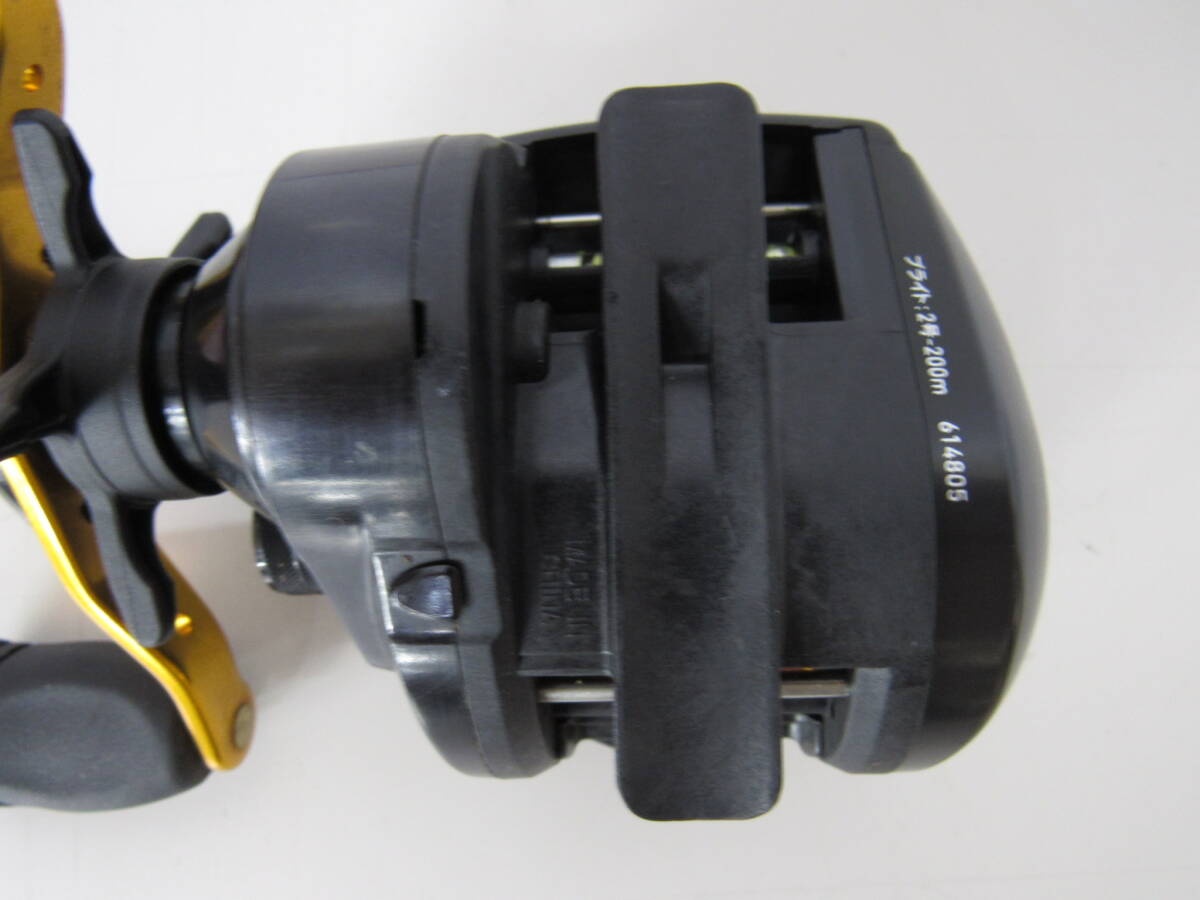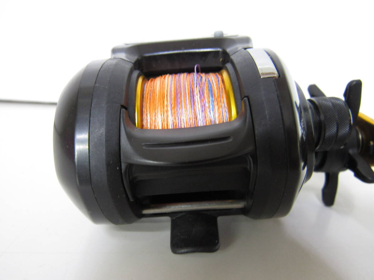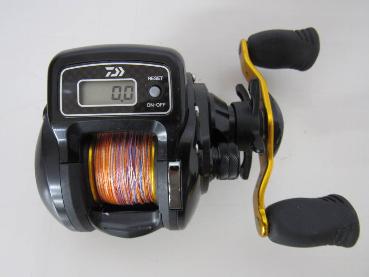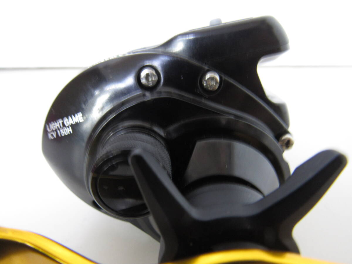 (特長/仕様) アジ・イサキ・マダイ・タチウオ・カレイ・マルイカ・根魚など、挙げればきりがないほど船釣りの中・小物のターゲットは幅広い。1台で何でもオールマイティに使えるリールがほしくなる。となれば、「ライトゲームICV」の出番。水深カウンター付きのコンパクトなボディに使い勝手の良い90mmダブルハンドルを搭載。チョイ投げ対応遠心ブレーキや高速仕掛け落下を可能にするスーパースプールフリー、コマセタイマーなど、多彩な釣りモノで役立つ便利な機能を備えている。シックで飽きのこないブラック&ゴールドのデザインが様々なロッドにマッチする、お役立ちのオールマイティリールである。 ●自重:280g ●ギヤ比:6.3 ●ボールベアリング数:3 ●ローラーベアリング:1 ●最大ドラグ力:4kg ●糸巻量(ナイロン):3号?160m、4号?120m 糸巻量(PE):2号?200m、3号?130m ●巻取り長さ(cm/ハンドル1回転):71cm ●ハンドルノブサイズ:S ■商品の状態 PEラインの号数は不明です。 カウンターの表示は出ますが作動は致しません。 作動は良好でゴリ感やシャリ感も御座いません。 全体てきに使用感があると思います。 使用品の為、キズ、汚れ・錆も有りますので写真などでご判断して下さい。 商品の状態などは写真などでご判断して頂き現状の状態とさせていただきます。 あくまで中古品であるため、ノークレーム・ノーリターンでお願いします。 配送は、ゆうパック便のみ取り扱いになります。 ※新規の方は必ず質問欄にご連絡をしていただいてから、入札をお願い致します。 ※ご連絡の無い場合は入札を取り消させていただきます。 | |