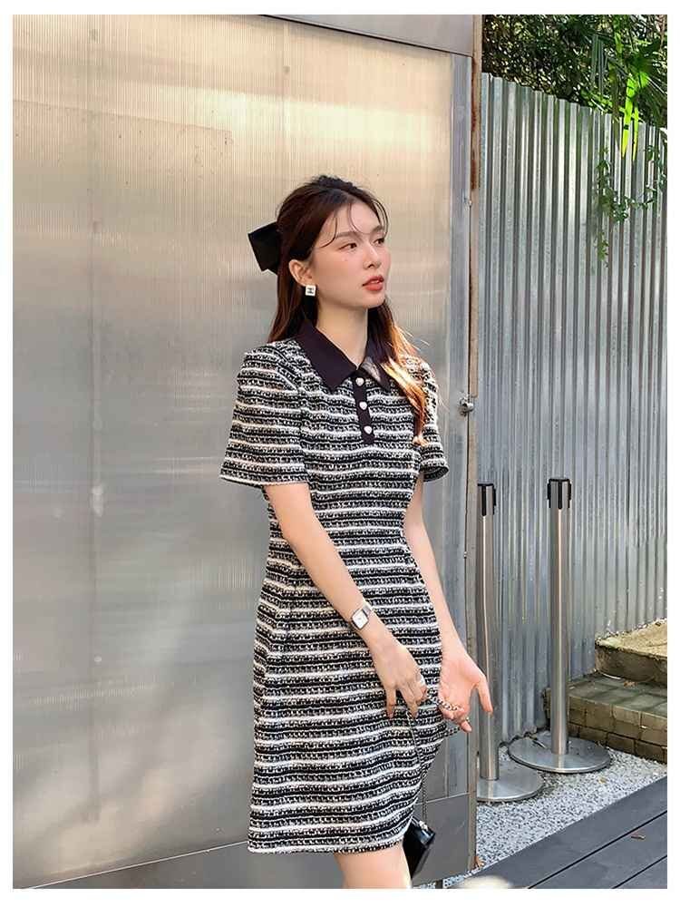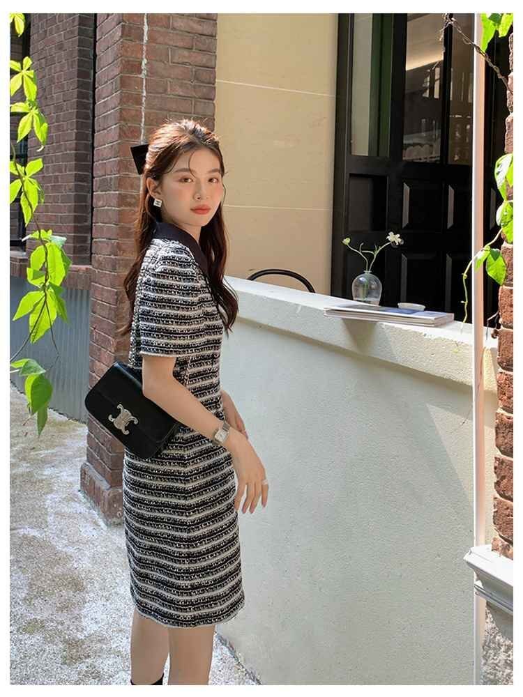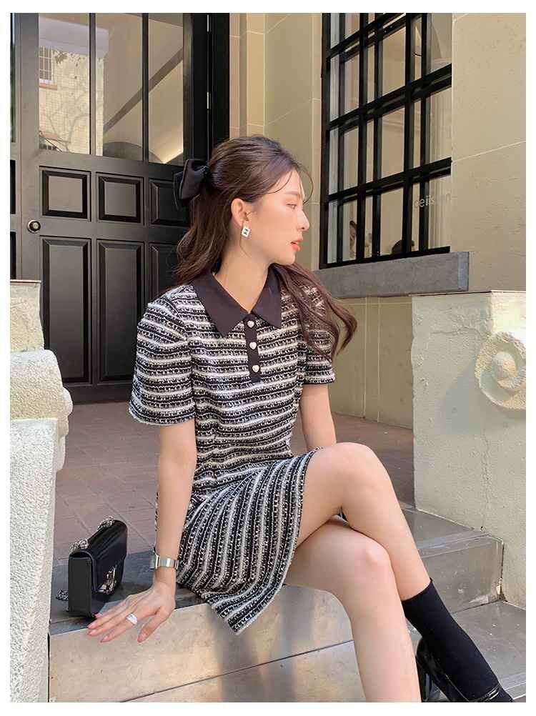 ミニワンピース 半袖ワンピ ジャガード織 かわいい ニットワンピース レディース XL ボーダー柄