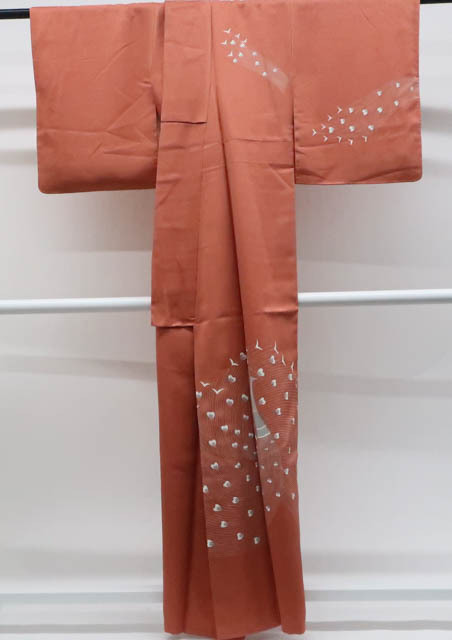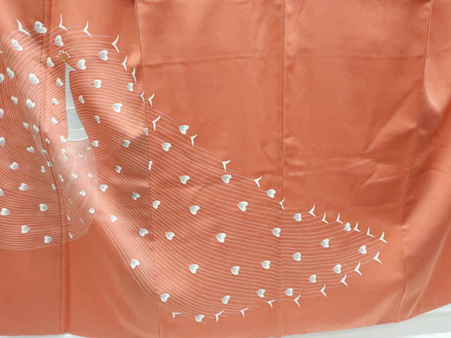 リサイクル商品ではございますが、大変良い状態のお品です。 地色はくすみ橙です。 1枚目の画像が近いお色かと思われます。 素材は正絹です。 |