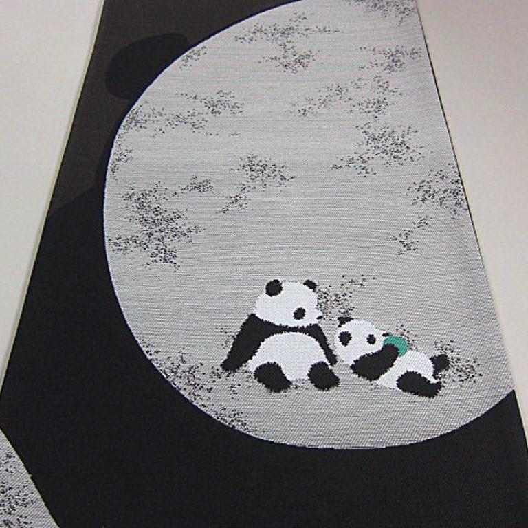 新柄 新品未仕立 西陣織袋帯 親子のパンダ