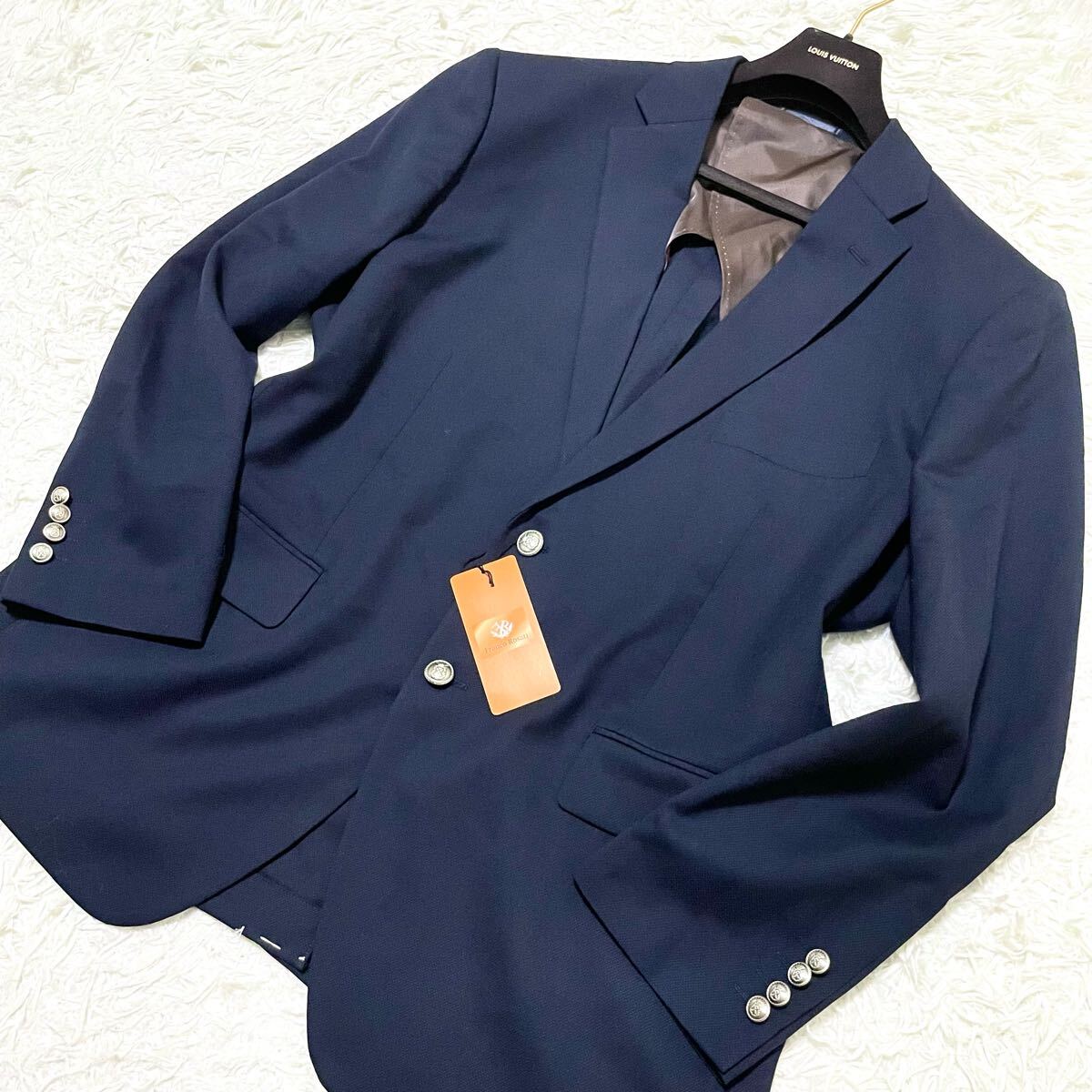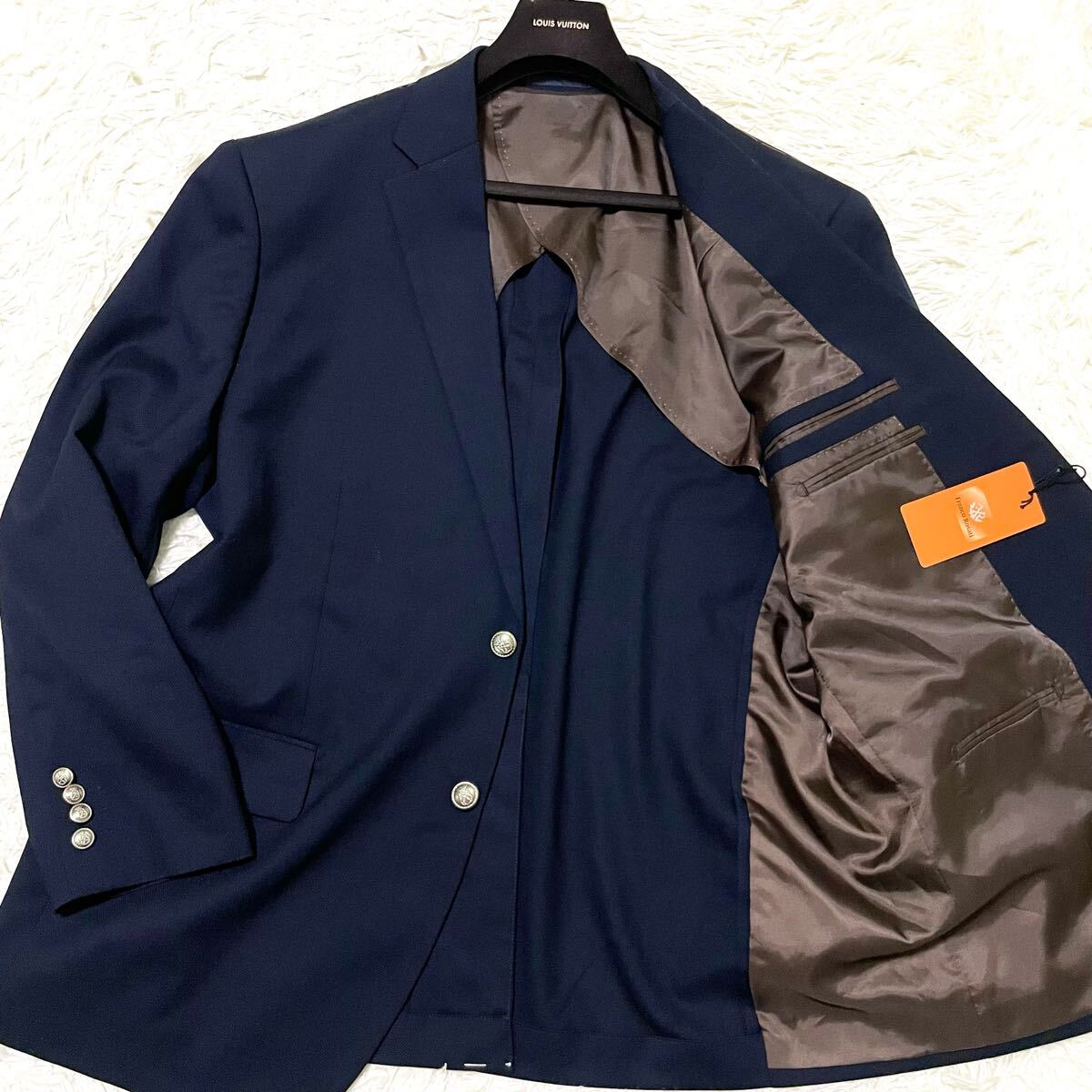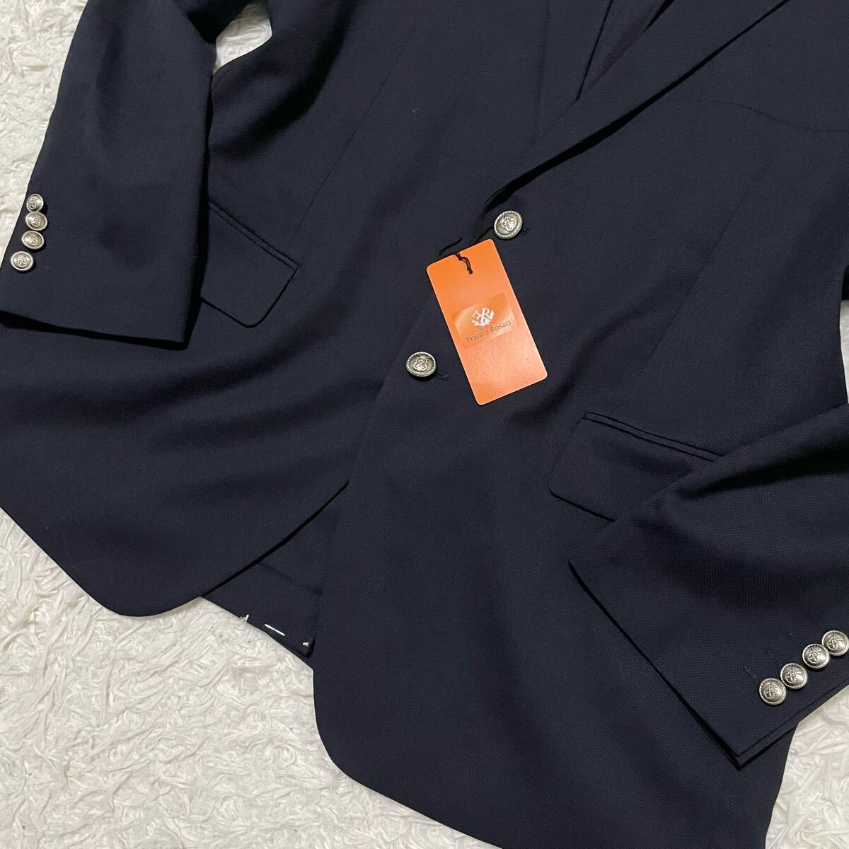 希少4L/新品タグ付 フランコロザーティ【輝くメタルボタン】テーラードジャケット ネイビー系 紺ブレ ブレザー メンズスーツ 刻印ボタン