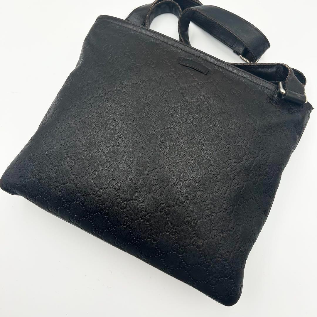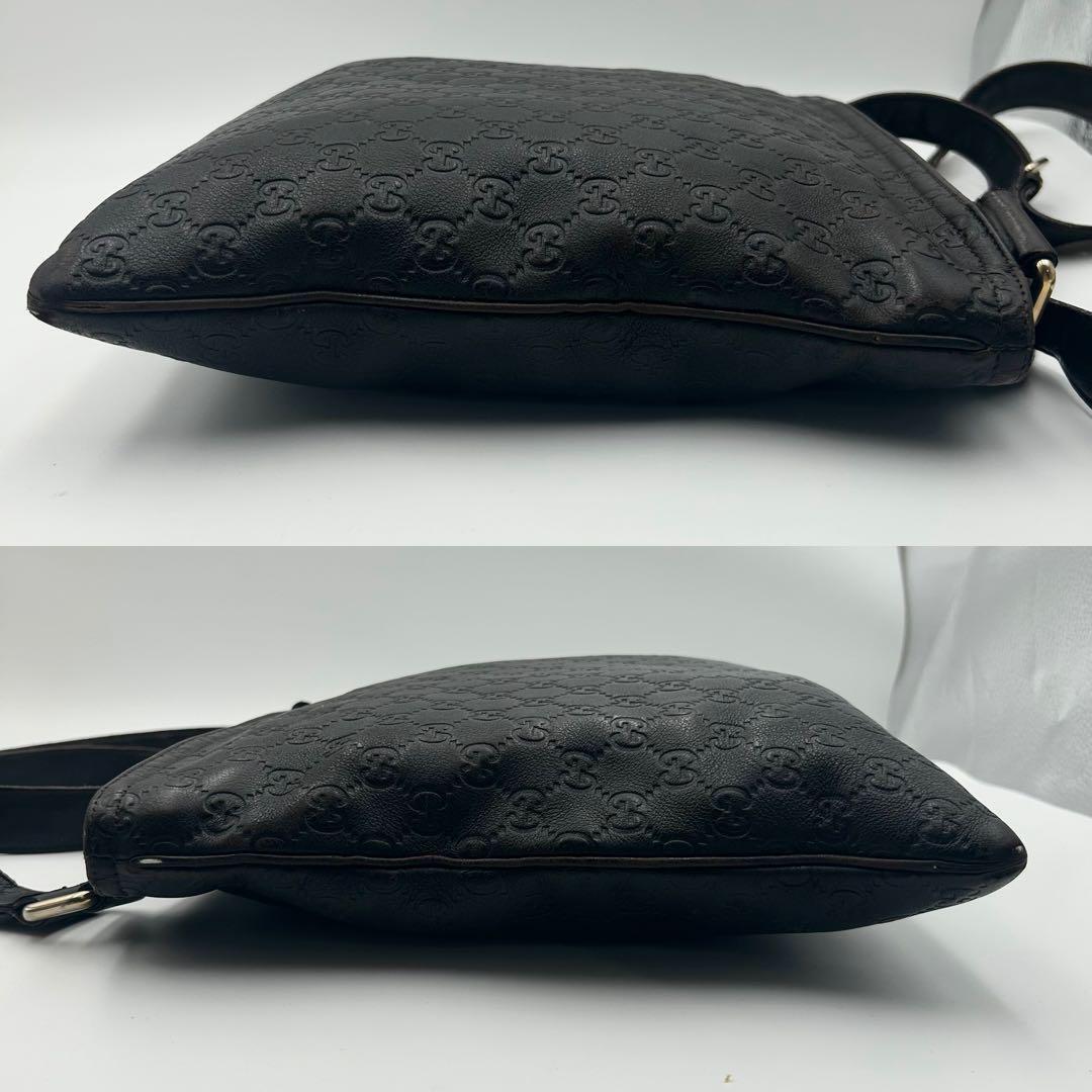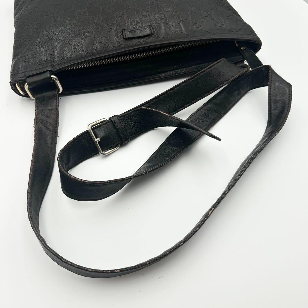 GUCCI グッチ ショルダーバッグ サコッシュ GG シマ 肩掛け 斜め掛け クロスボディ レザー 革 ダークブラウン メンズ ビジネス バック 鞄