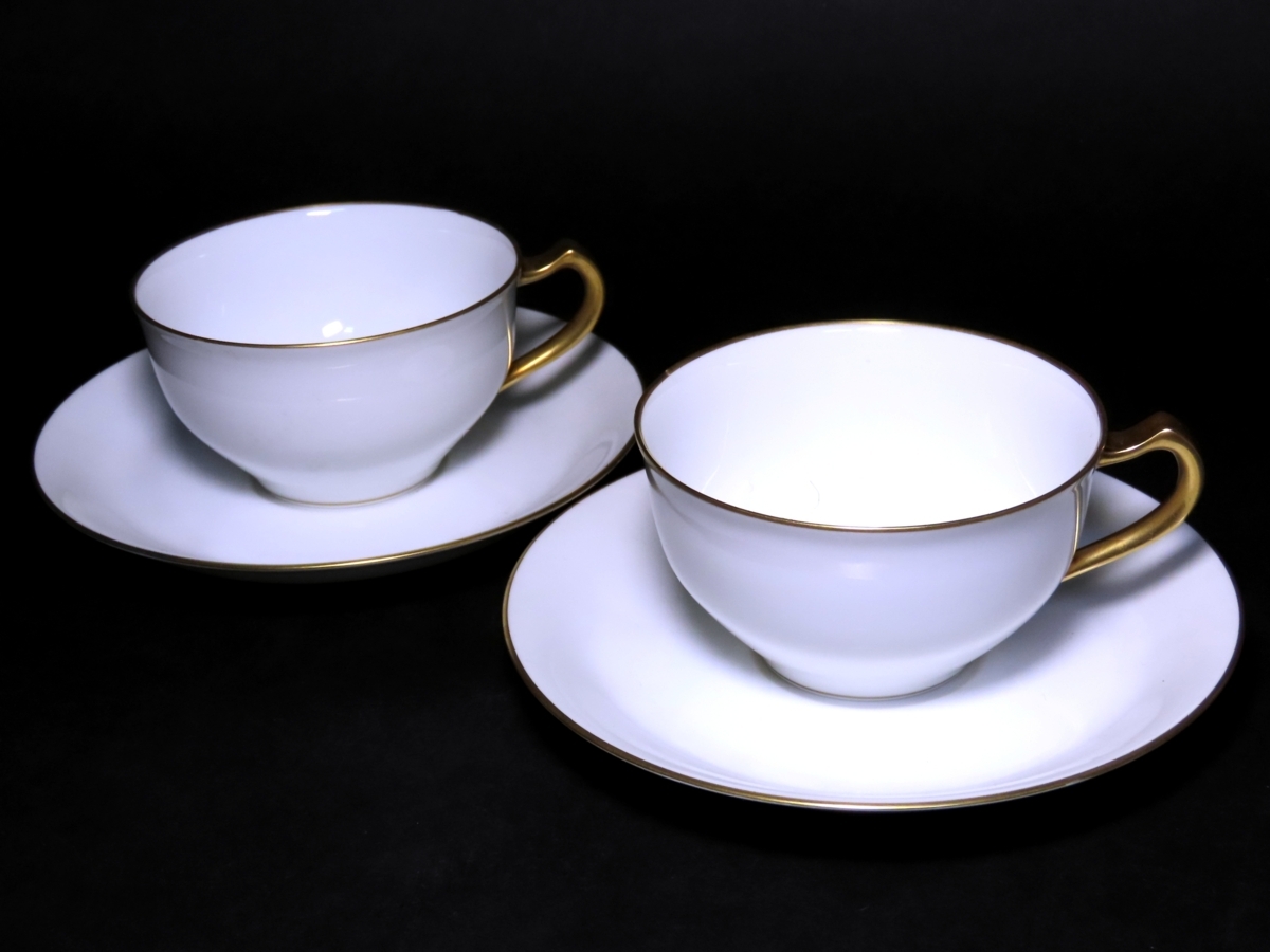 ■大倉陶園  ペア・カップ&ソーサー  ゴールドライン   〈同梱対象商品〉