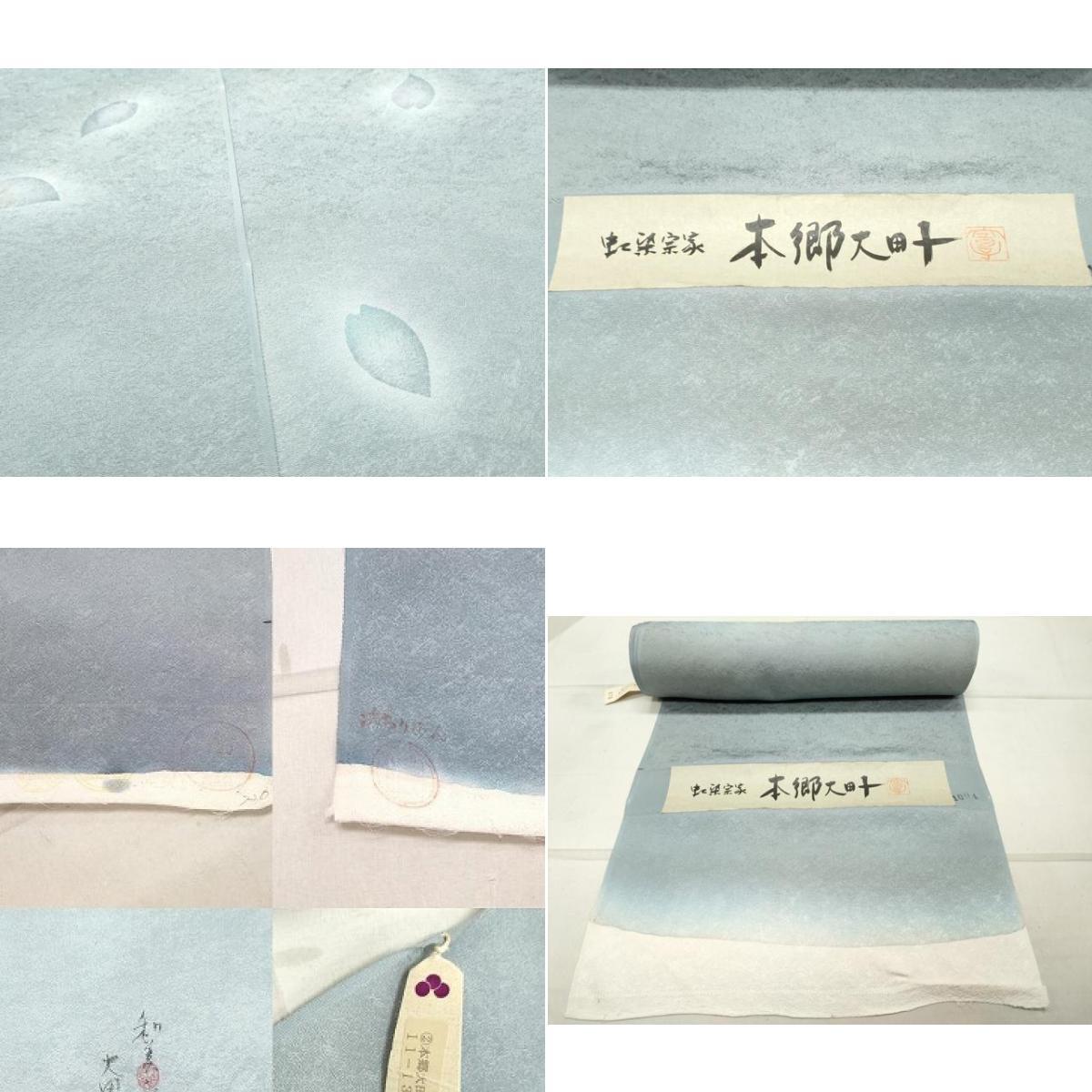 【正絹・未使用】 状態は特に目立ったシミ汚れなどもなく大変良い状態です。 上賀茂神社の境外摂社・大田神社の近くで創作活動を続ける、 染色作家二代目本郷大田子氏です。 虹染とは初代本郷大田子が考案した染色技法で、 優しい色合いの絶妙なグラデーションが特長、 いくつもの色を生地ににじませることで色が重なり、 虹のような玉虫色を生みだす技法です。 色が“にじみ”、“虹色”に染まることから、 「虹染」と名付けられました。 優れた色彩感覚と繊細さが必要とされ、 作家の個性や感性が大きく作品に反映されます。 海外からの評価も高い本郷氏の虹染は、光を受けて発色し、 近代染色の奇跡ともいわれるほど艶やかで上品です。 大変上質な逸品になります。 お安く出品致しますので、是非この機会にいかがでしょうか? |