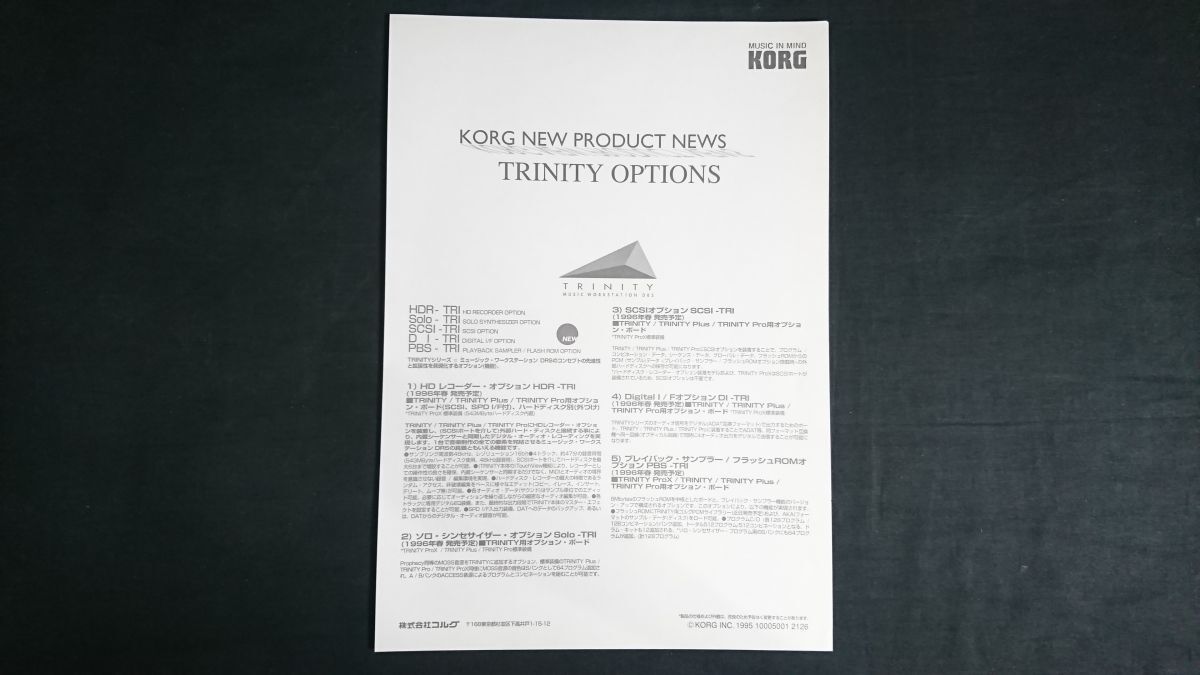 『KORG(コルグ) TRINITY(トリニティ)シリーズ カタログ+TRINITY(トリニティ)OPIONS(オプション)カタログ 1995年』コルグ株式会社/TRINITY/TRINITY plus/TRINITY pro/TRINITY proX | |