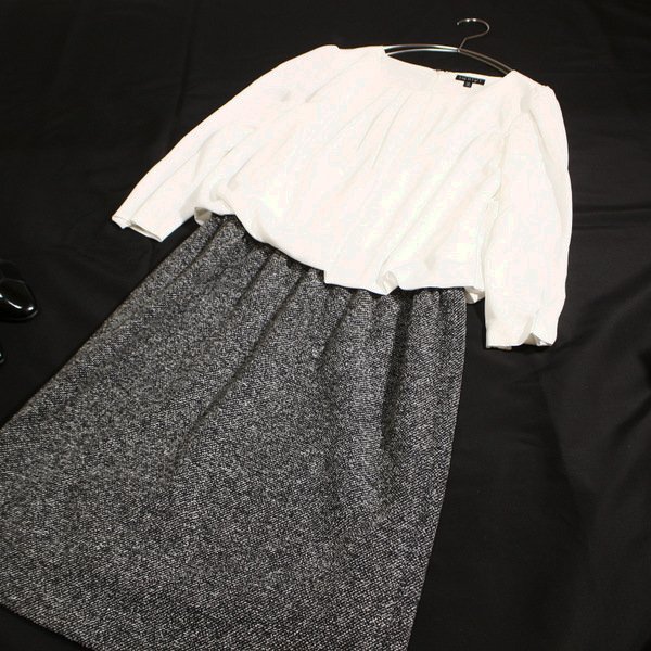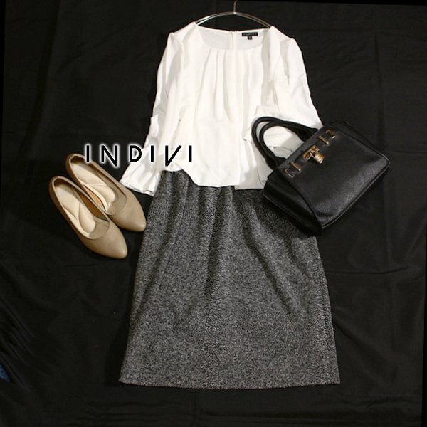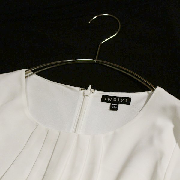 美品 INDIVI インディヴィ 上品綺麗め とろみ切り替え 立体ジャージーストレッチ ワンピース 38号 M 春 秋 25C08