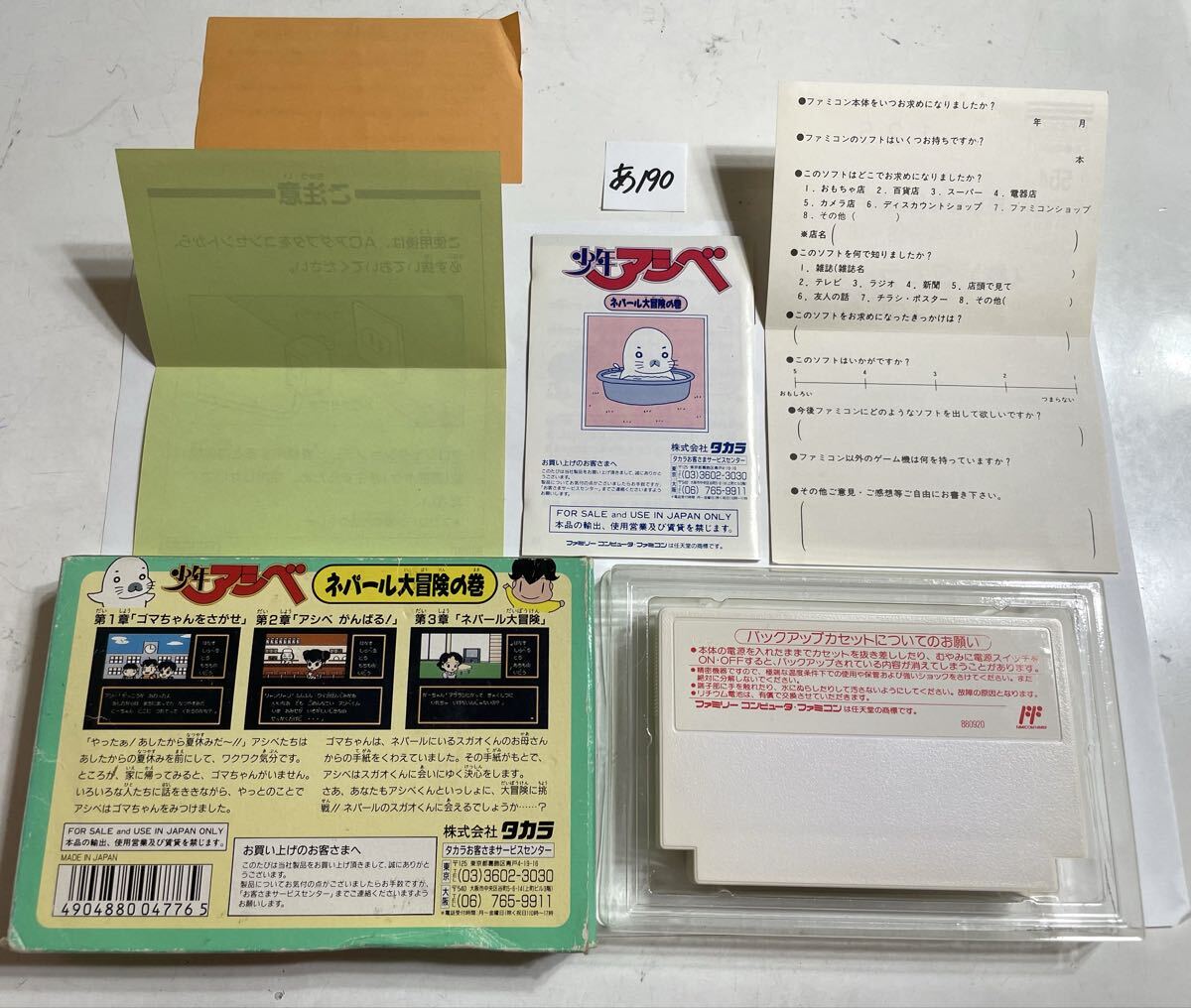 少年アシベネパール大冒険 ネパール大冒険の巻 ファミコンソフト FC 箱 取説付き 【動作確認済み】No.あ190