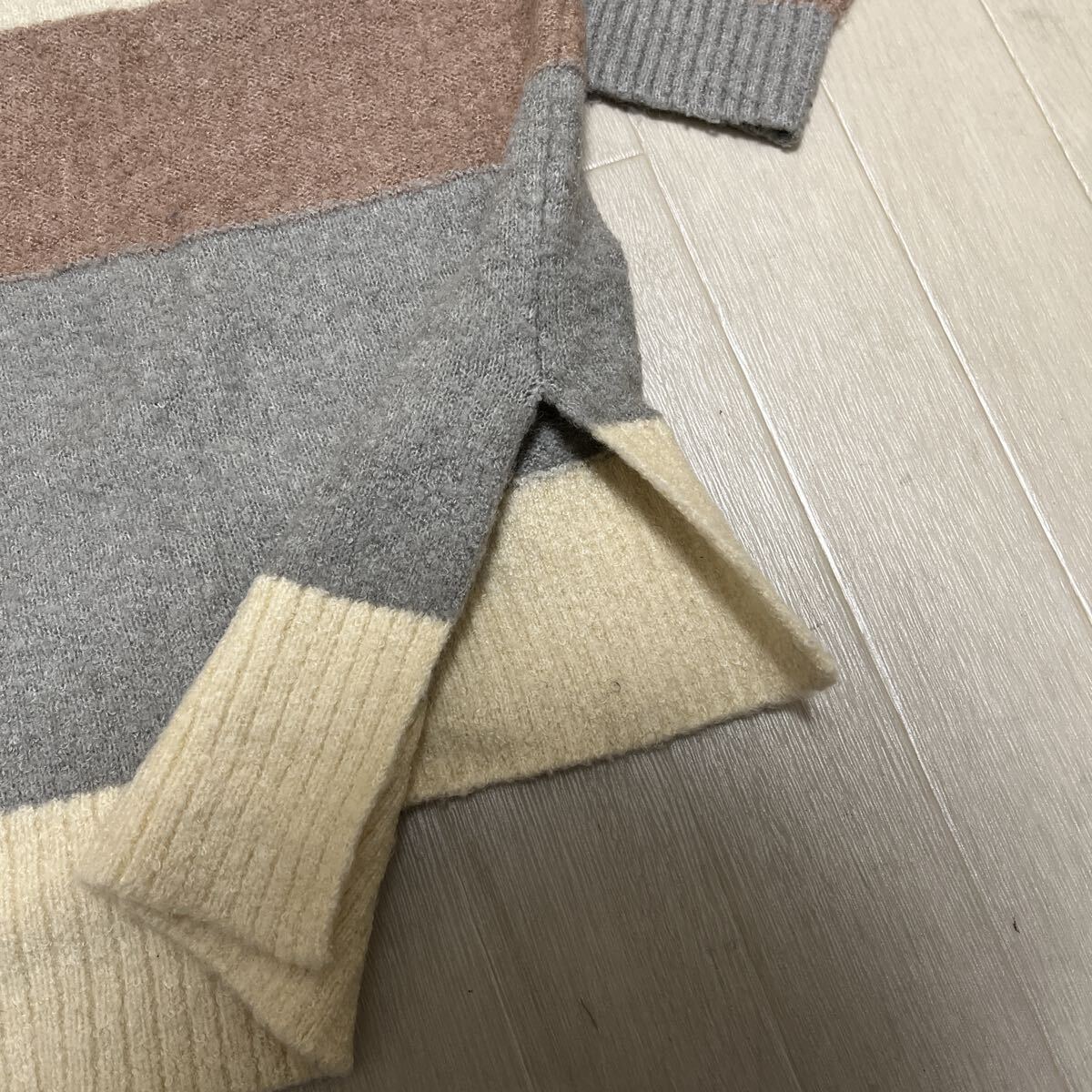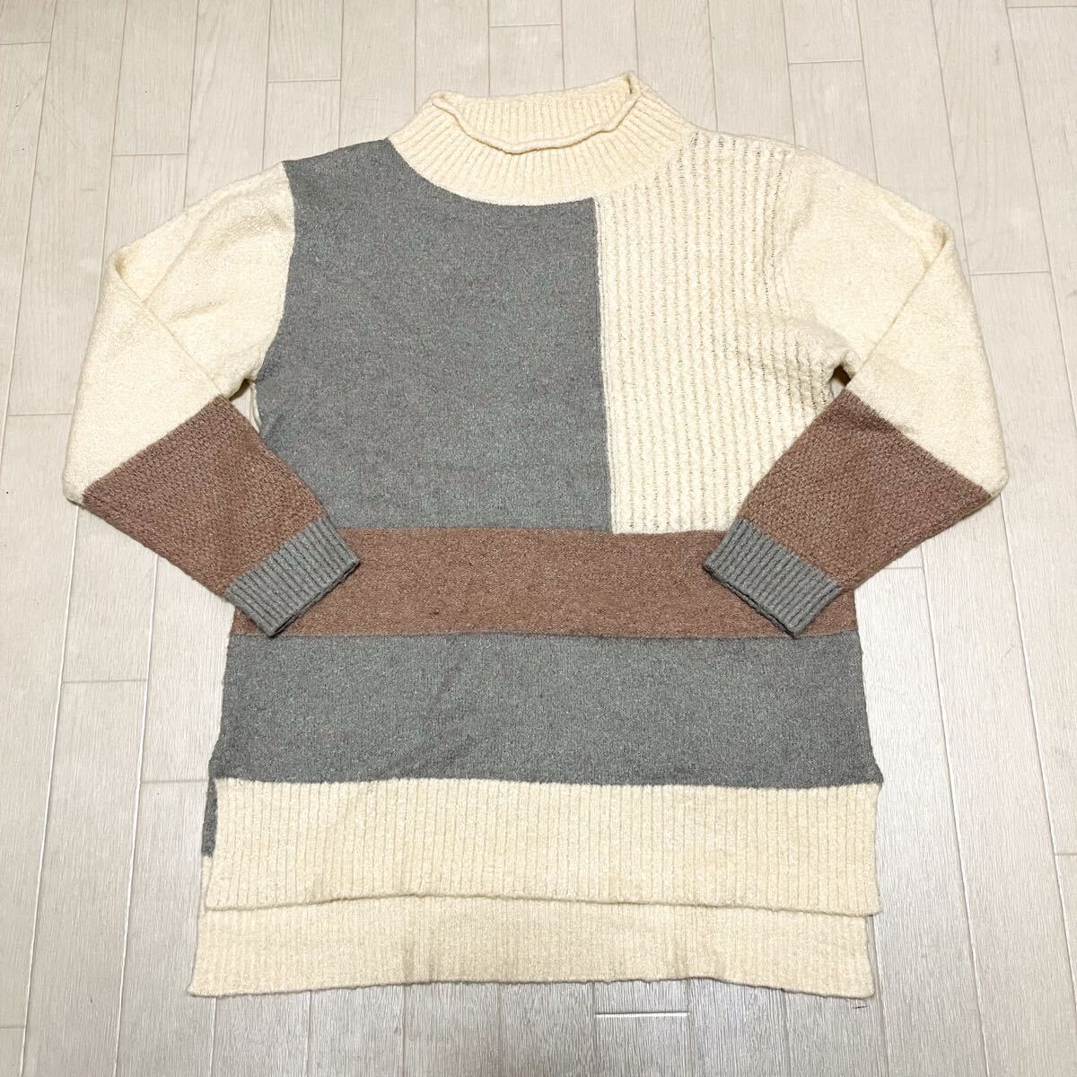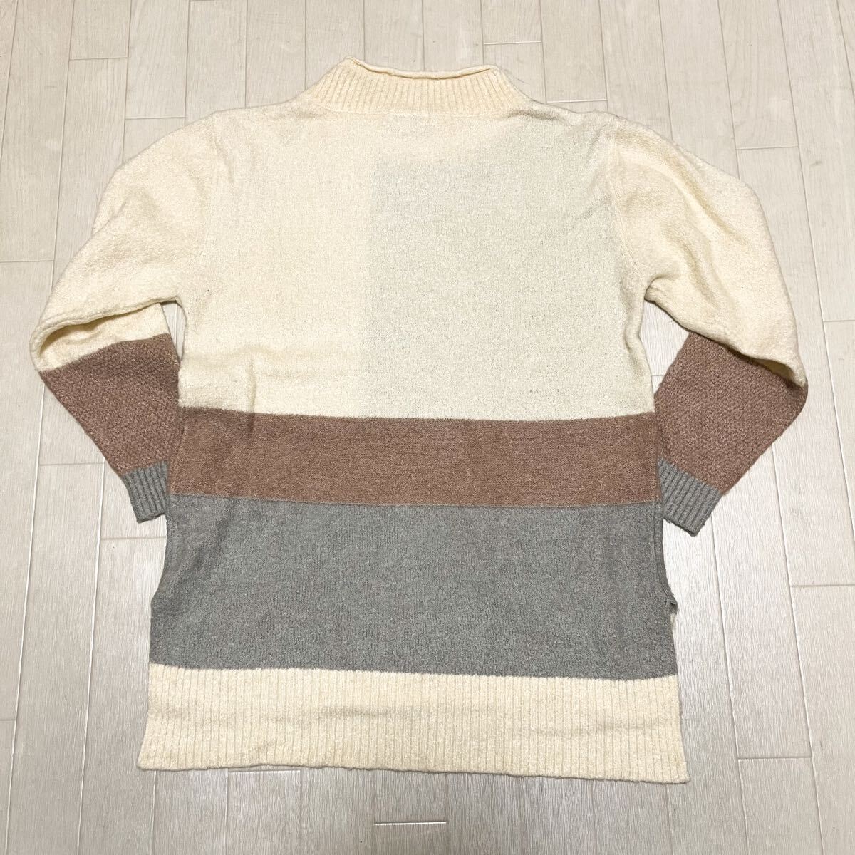 和852★ McGregor マックレガー 長袖 ニット セーター デザインニット M ホワイト グレー ブラウン レディース